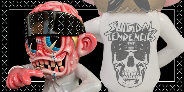 “New colorway of S” K” UM-kun with Suicidal Tendencies is Meaty S” K” UM-kun. His head and hands are “Marbled Meat” cast. Looks like his skins are peeled off. As it’ s cast, not paited, every single one is different and unique.”