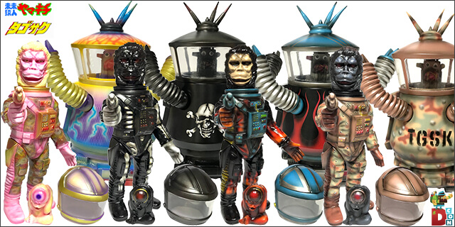 We, BlackBook Toy, are proud to bring dope one offs by Marvel Okinawa. He has perfectly executed Yamakichiya’ s Future Ape Yamakichi and Tagosaku. Sold individually but Yamakichi and Tagosaku can be combined. Also SAL9000 (finger puppet comes with Yamakichi) can ride in Tagosaku’ s cockpit. You should get a pair. Only 1pc each made. L-R:Psychedelic, Death or Glory, Hot Rod, Desert Camo.