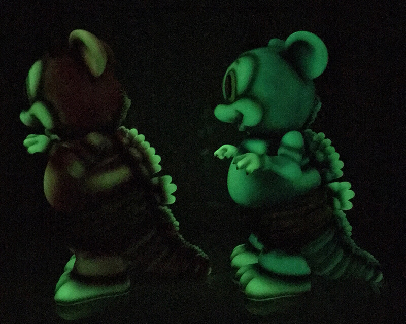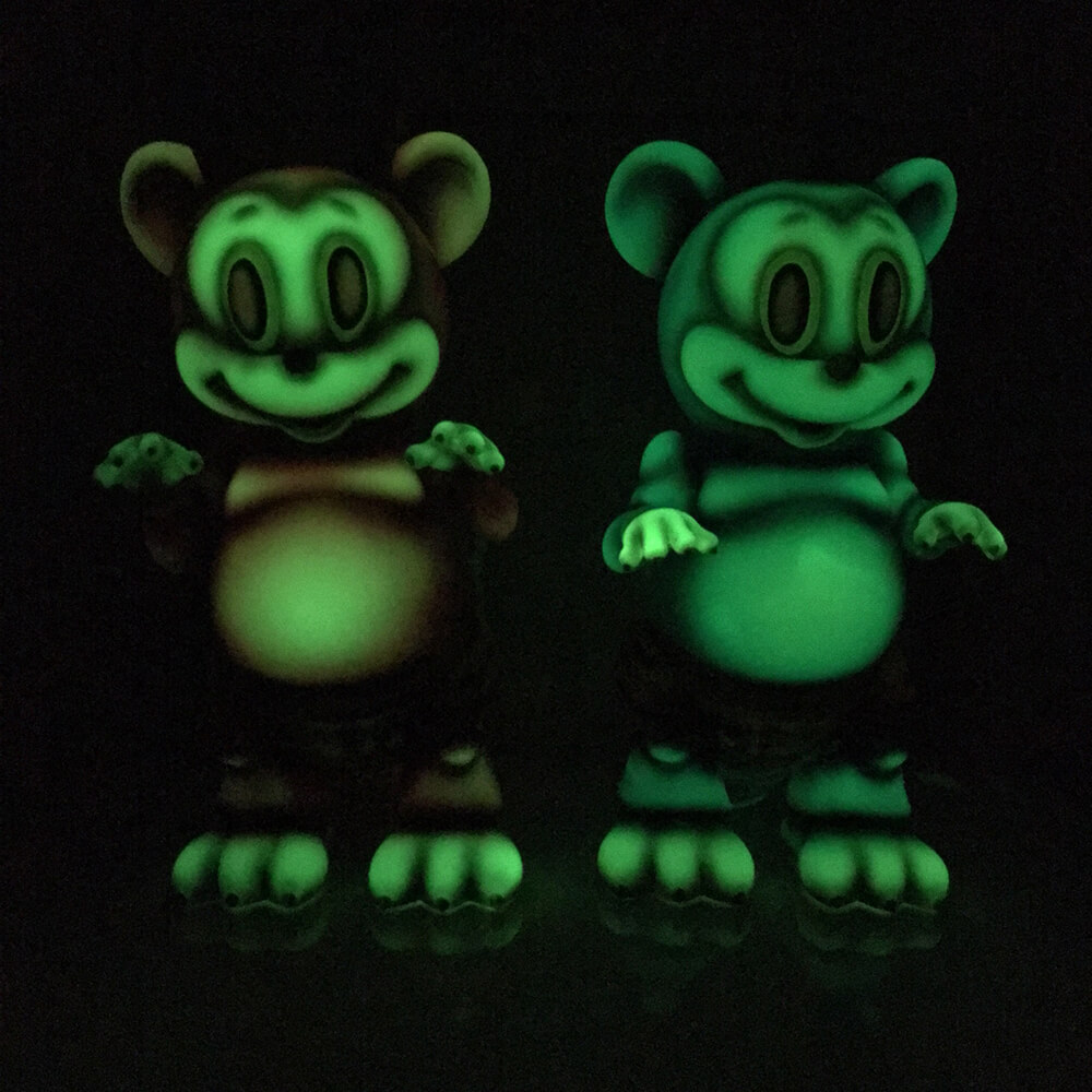 Two Ron English’s Mousezilla customs (read HERE), based on glow in the dark soft vinyl;