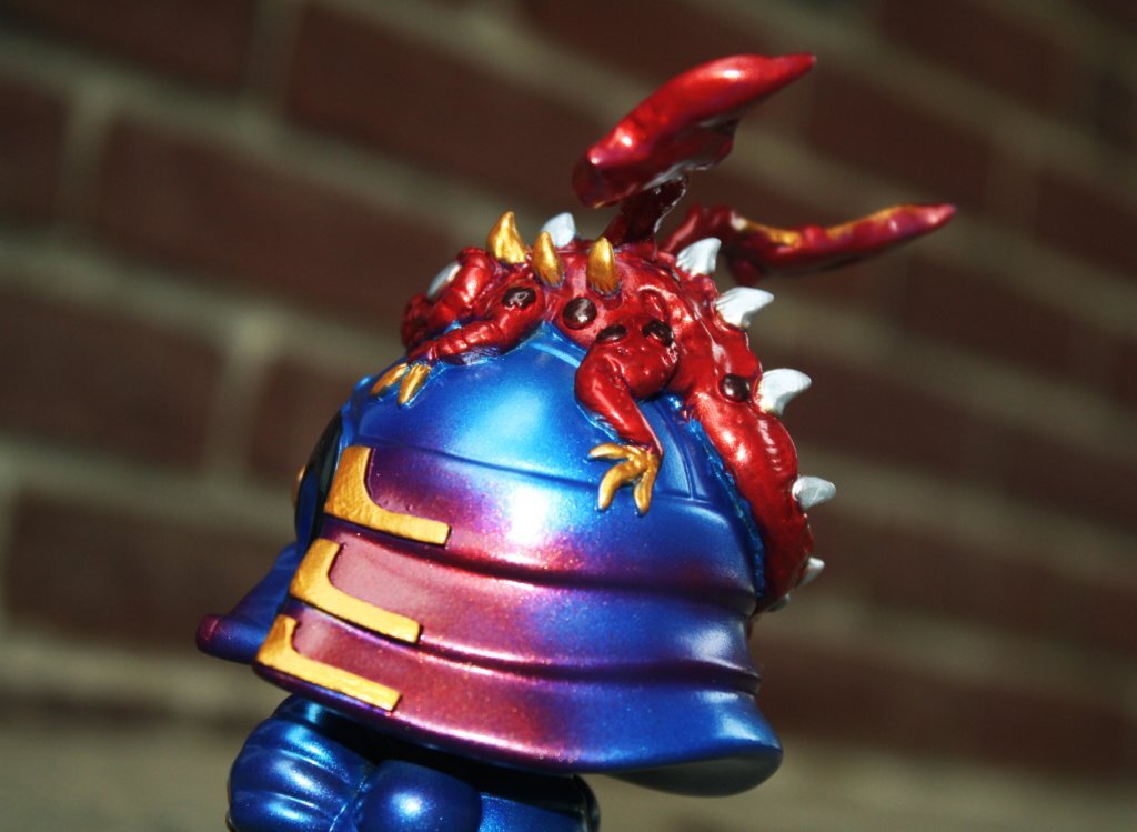 I’ve really put myself into this piece. Feeling a spark re-ignite in me, as an artist, to be more true to my HERO colors & myself. Putting my personality in each color, from the striking cobalt blue, crisp clean gold, with a hint of intensity red. AND OF COURSE a powerful baby dragon. Don’t let his size fool you, he packs a punch. This is the first in customs where I will be creating from my HEROES HEART.