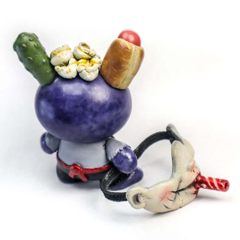 This 3inch Kidrobot Dunny custom, with applicable face mask is called Snack bar Stanley and as you can see from his hotdog/popcorn/pickle head, he loves to snack but perhaps Stanley also snacks on other things too – mainly brains. You can purchase Stanley HERE for 119.08euro.
