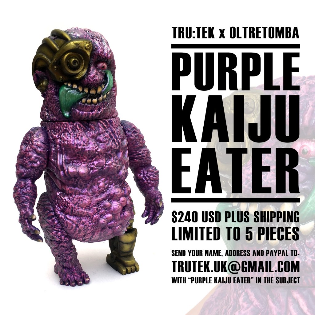 Our main man Tru:Tek, hit us up with his latest custom “Purple Kaiju Eater” and offering YOU the chance to own this bad boy. Tru:Tek takes the reins of Oltretomba Kaiju Eater known for his tongue action HA, that’s what the ladies told us.