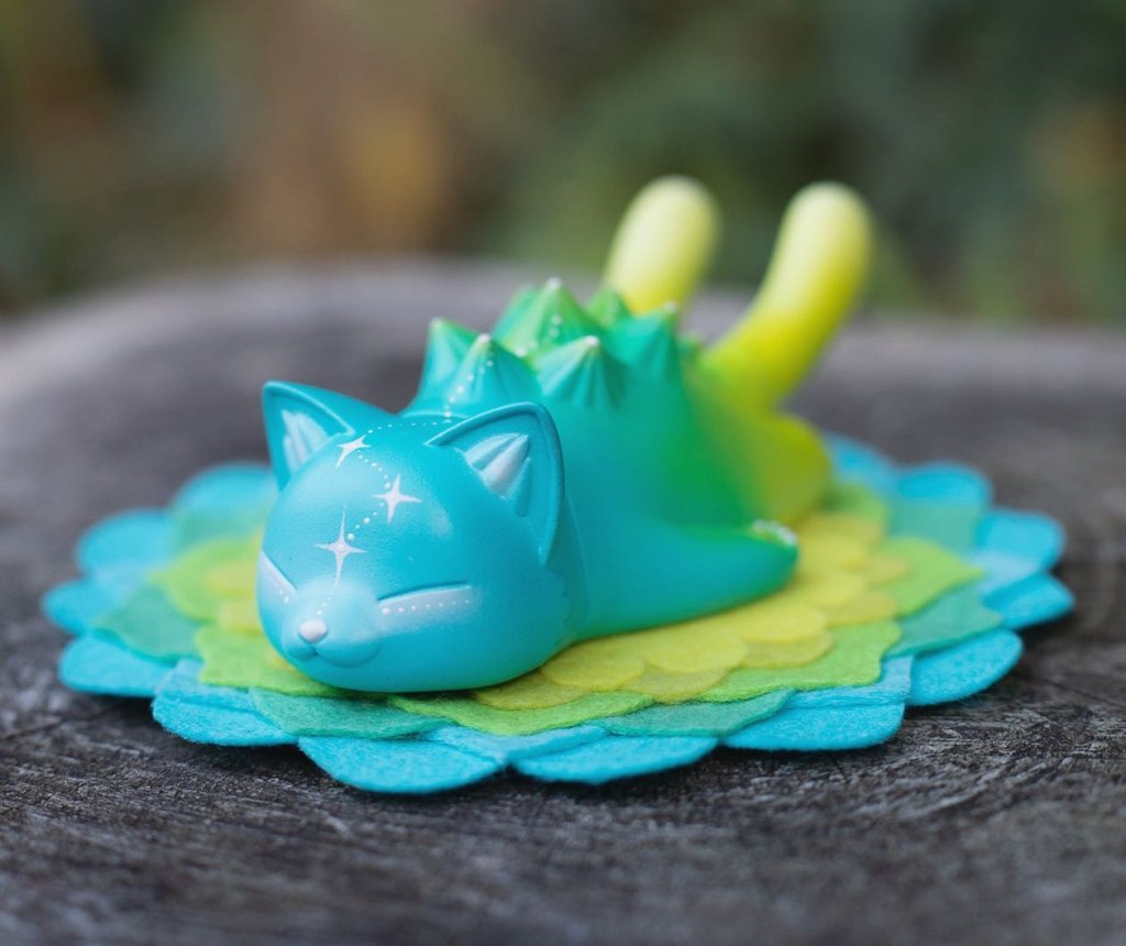 Cast your minds back to 2018 when our dear friends Muju World blessed Konatsuya’s Sleeping Negora with Muju magic. With the world in the darker times, Muju World adds some light into the world with their last in a series of Sleeping Negoras. To top off the week, Muju World presents Daydreamer & the Happy Hills which is latest one-off sculpted scene. The handmade characters are all protected by a glass bubble. This piece includes glow-in-the-dark painted details with signature Muju World style.