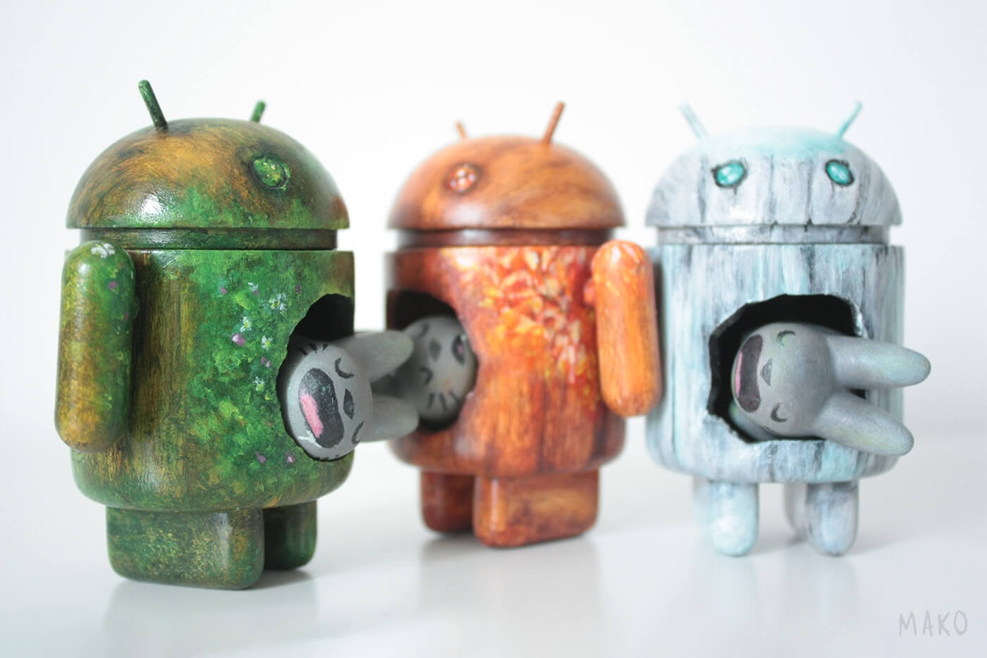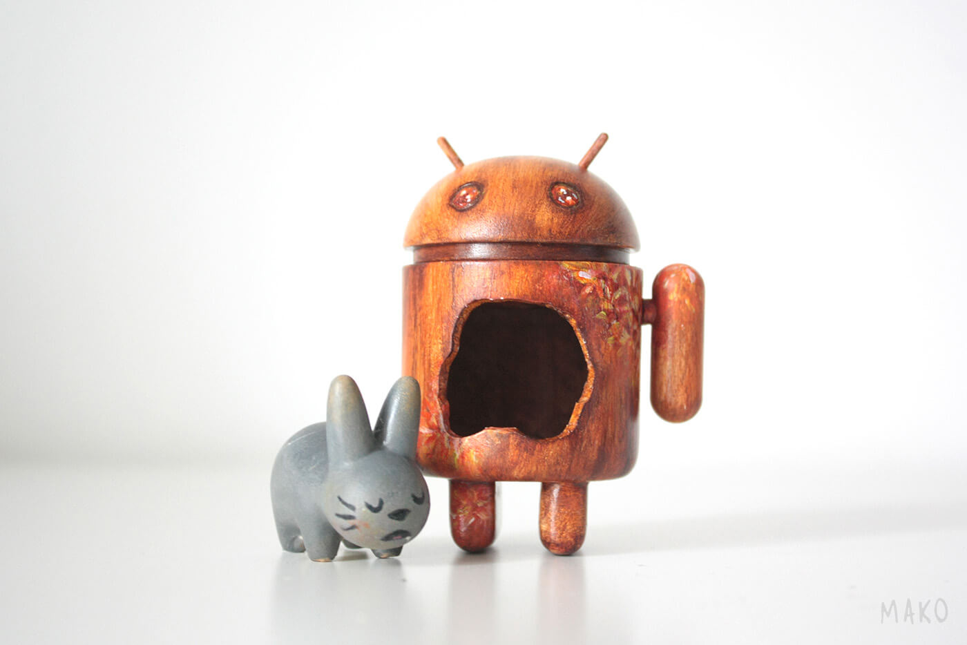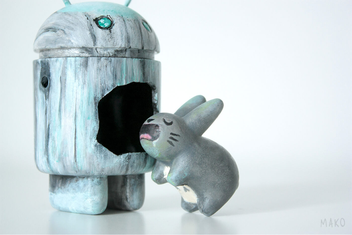 Fans of GrayMako will know that she has a special touch when it comes to Totoro, and her latest set of customs are no exception! She created a slumbering Totoro using the 1.5inch labbit, who peacefully sleeps in a 3inch tall Android tree trunk. There are three sets, with different coloured tree trunks and Totoro expressions! These are handpainted with acrylic and covered with glaze.