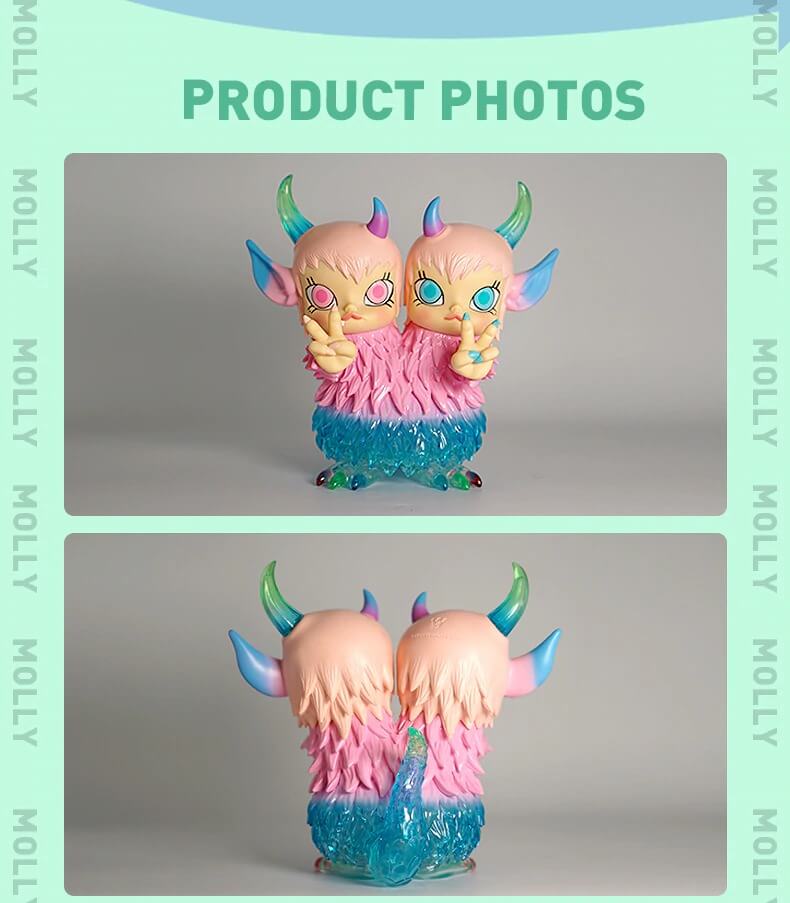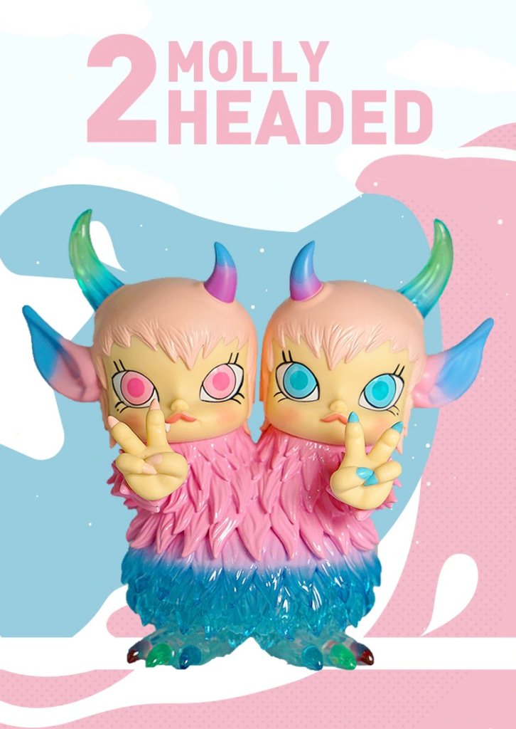 The mystery has now been exposed! From the relics the mysterious 2 Molly Headed have now been confirmed they do exist! time to re-write the history books as Kenny Wong’s Molly has been uncovered by POP MART. Now they give collectors a double dose of kaiju and double peace signs!