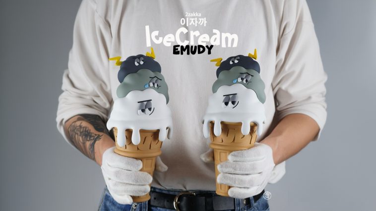 Just over 2 years ago, Korea based artist 이자까 2zakka made us sing Mariah’s “Emotions” while the lyrics summed up and represented our emotions with 2zakka’s cloud with many emotions “Emudy”. Fast forward to the present day we had the opportunity to meet 2zakka in South Korea where we saw the fantastic but not edible “IceCream Emudy” alongside many secret projects (behind-the-scenes footage coming soon) anyway with the scorching Summer weather around the world, we all need something that won’t melt in the sun and IceCream Emudy is the answer! Limited to 20, this resin IceCream Emudy can be yours TODAY.
