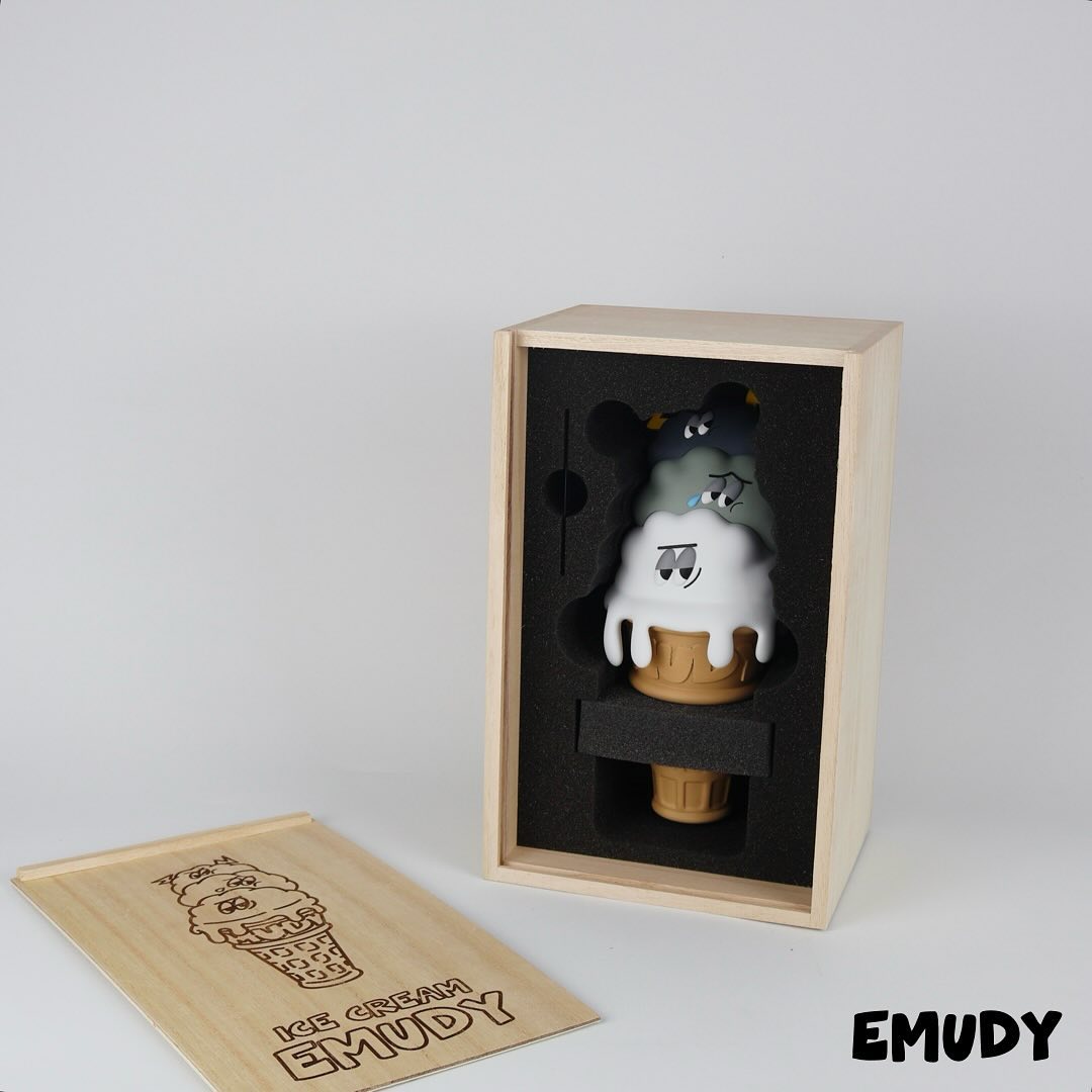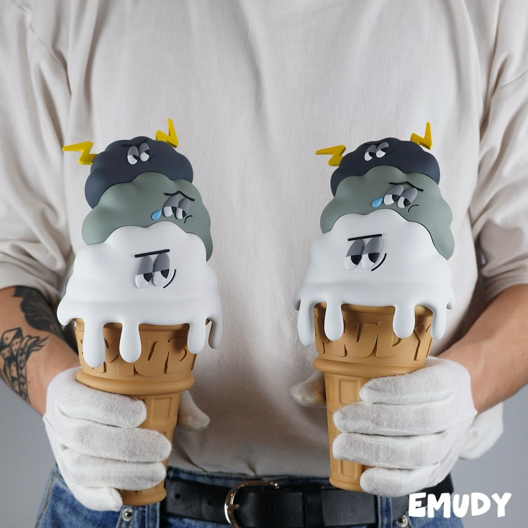 Just over 2 years ago, Korea based artist 이자까 2zakka made us sing Mariah’s “Emotions” while the lyrics summed up and represented our emotions with 2zakka’s cloud with many emotions “Emudy”. Fast forward to the present day we had the opportunity to meet 2zakka in South Korea where we saw the fantastic but not edible “IceCream Emudy” alongside many secret projects (behind-the-scenes footage coming soon) anyway with the scorching Summer weather around the world, we all need something that won’t melt in the sun and IceCream Emudy is the answer! Limited to 20, this resin IceCream Emudy can be yours TODAY.