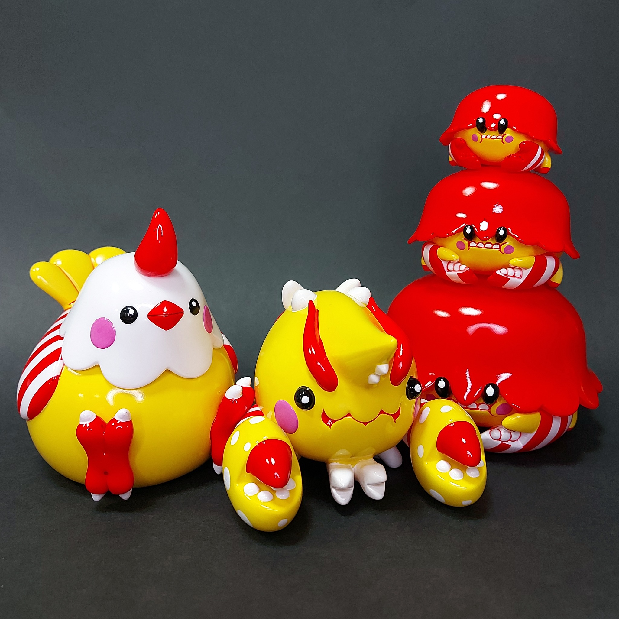 Back from the Thailand adventures is 78JO! returning from TTE 2023, as promised international collectors will have their chance to own what 78JO has been cooking up Ranging from BBO the collabo with BigClawx, 78JO’s BallBallSquid, the classic Ballballfish & Pufferballfish Ballballbird ,even the Daruma Ball Ball Crab have the fast food giant themed colorway!