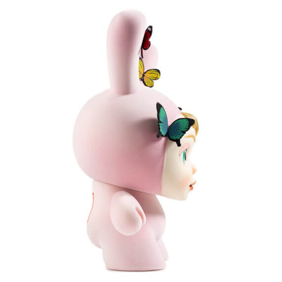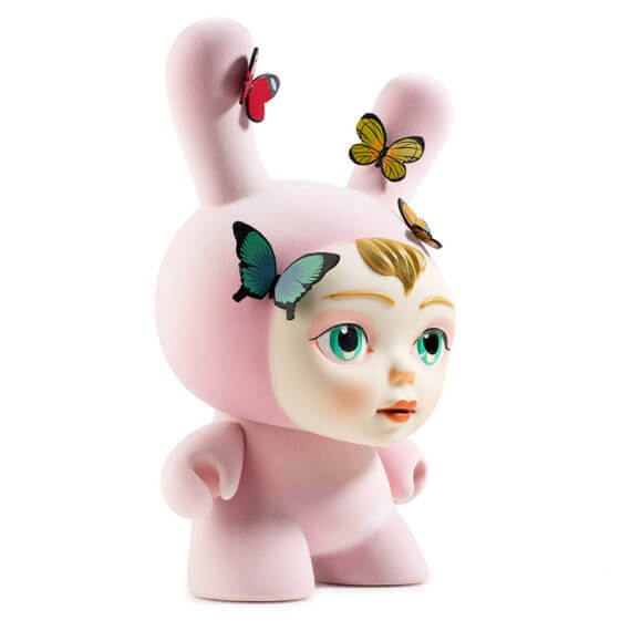 Some of us dream in pastel. The etheral mind of Mab Graves has created an 8″ Dunny fit for a fairy. Featuring her signature big eyes and pixie spirits this flocked piece comes complete with butterfly accents.