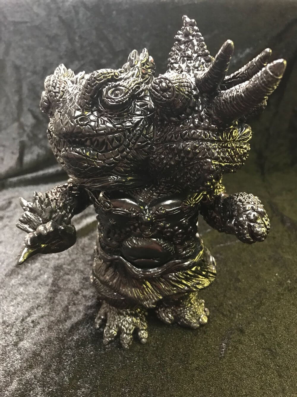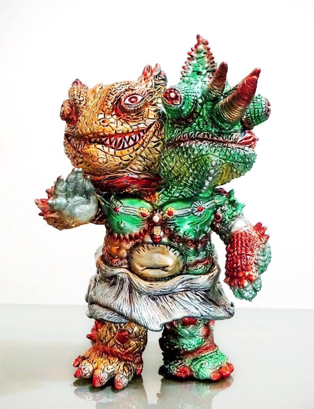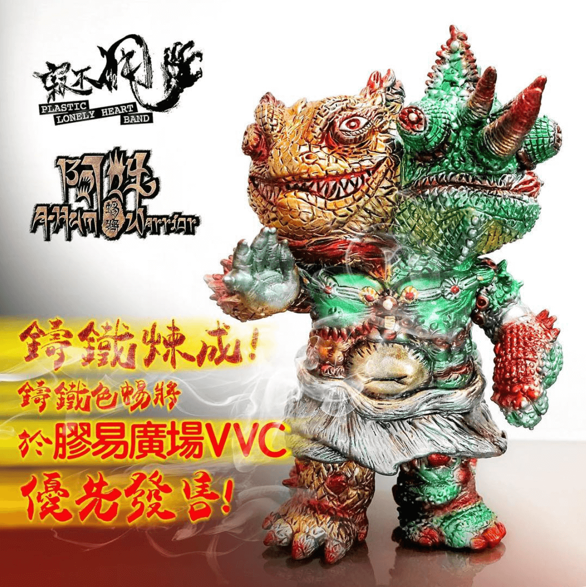 HERE WE GO! Hong Kong’s up and coming Plastic Lonely Heart Band shows off their new colourway for their “A-HUM WARRIOR”! Eddie Chen from Plastic Lonely Heart Band has armed up a limited amount of A-HUM WARRIOR’s and said to have armour that can withstand 1000’s of stabs from worlds sharpest swords! ( ok that might be FAKE NEWS, but it would be cool, HA. Inspired by and based on Kongōrikishi from Japan. Lonely Heart Band created and hand-sculptured A-Hum Warrior with the elements of Bearded Dragon and Jackson’s Chameleon now in a new Metallic Colourway and a blank black edition for all you customizers or collectors who like the RAW effect.