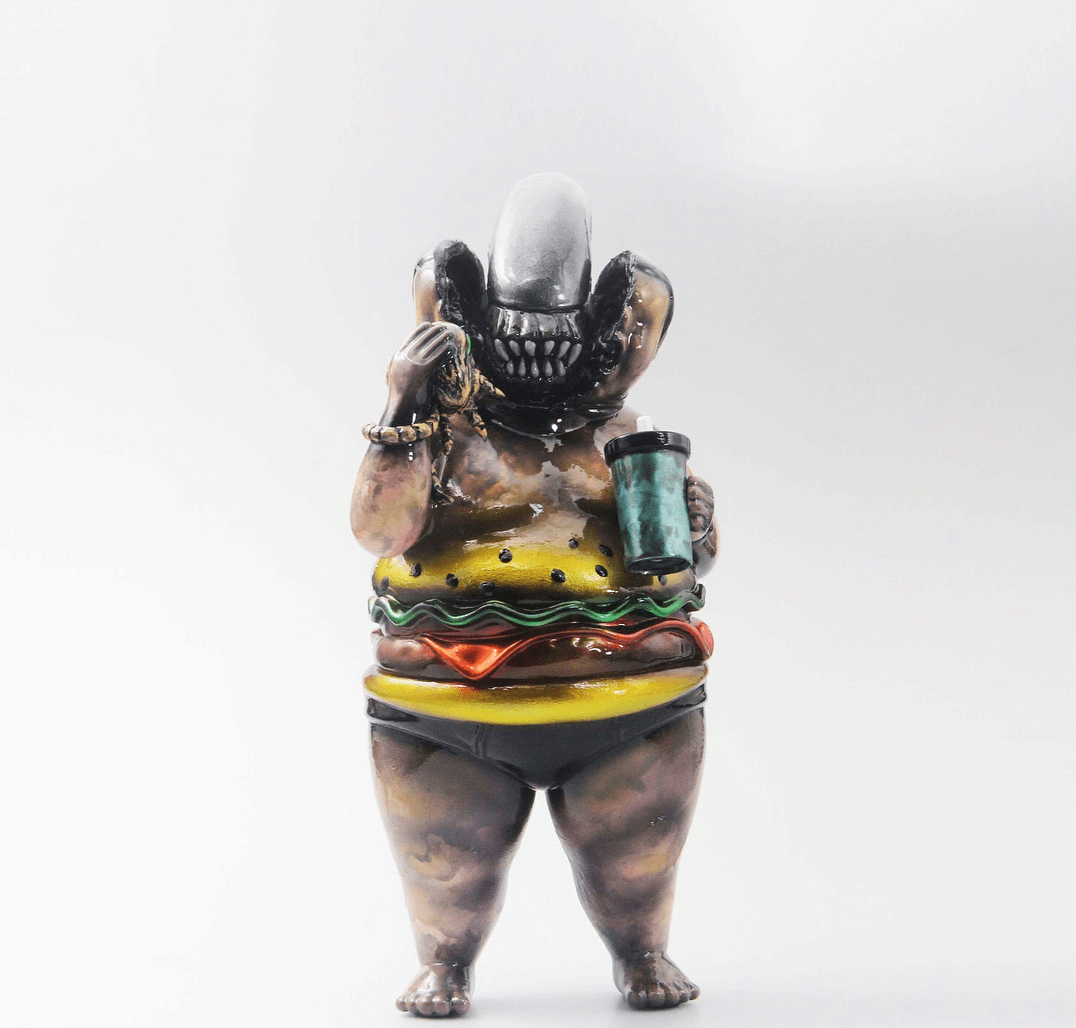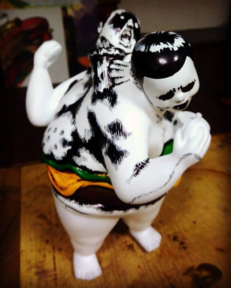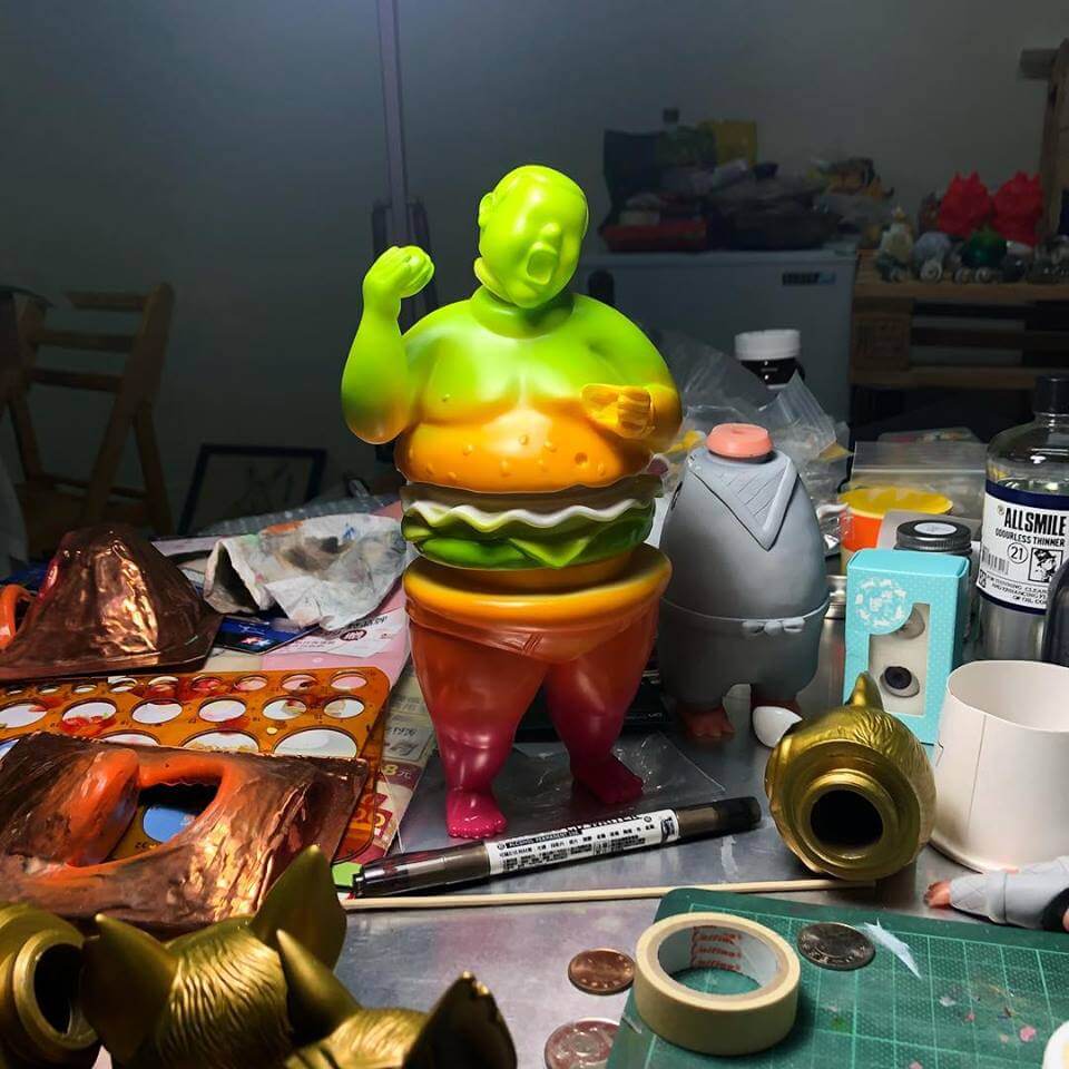 A little bit of Hong Kong is heading to Taipei! AE Workshop x Eric Chow has called upon artists from around the world for their LOST IN Obession at Wrong Gallery this weekend. Each artist including themselves have taken “Jeff” and giving their own spin and signature style. Save the date and calories this weekend. Like we said before, one figure from 2017 that we have our eyes on will be ‘”Jeff” The Fattie soft vinyl figure by Hong Kongs Eric Chow and AE Workshop! Maybe it resembles our lifestyle and sexy body. Their message “Self-entertainment => Eat- Sleep – Recycle” AE Workshop collaboration with illustrator Eric who used to work for UK’s I love Dust now with AE Workshop merged with food from our daily life into vinyl format! It will be interesting to see other artists take on JEFF.