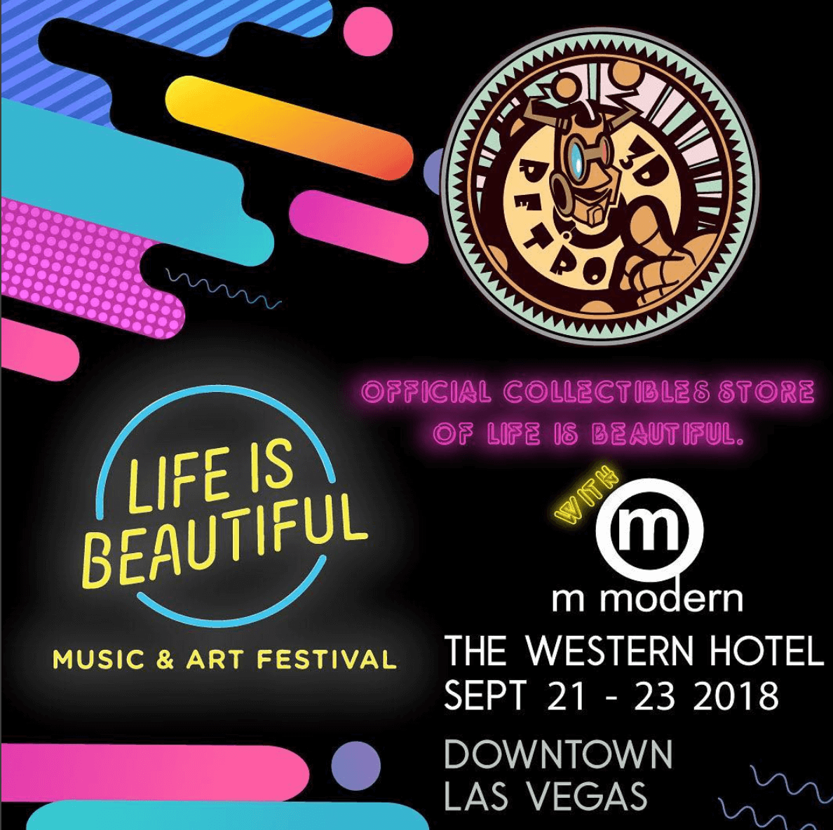 3DRetro is the official collectables store for Life is Beautiful Festival located inside the Western Hotel along with M Modern Gallery “Crime on Canvas” Art Show.