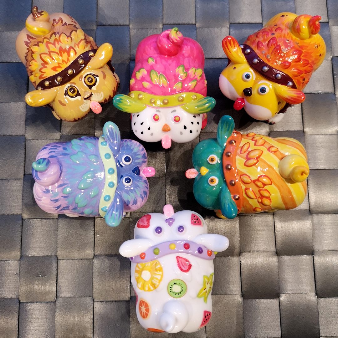 The search is OVER, well for us that is. Muzi Yi of In Nuts Studio has been popular at various Asia conventions and it has been hard getting hold of the wacky “Pipipopo-zoo” soft vinyl figures from Muzi Yi in the West. Today Muzi has shared with us their latest edition, featuring sem-clear soft vinyl with green and pink paint application. OK, WHO LET THE DOG OUT?!