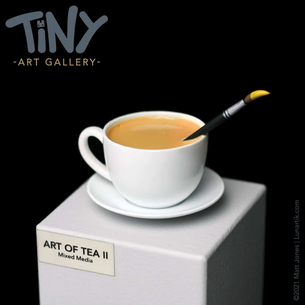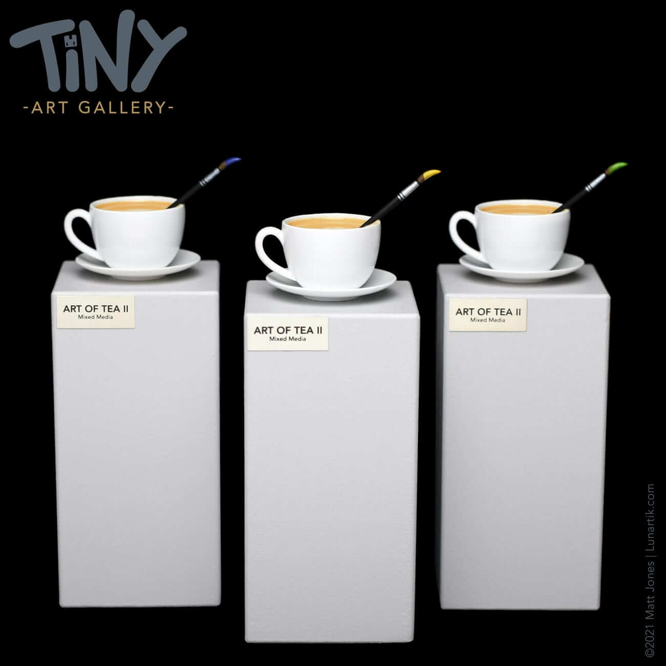 As part of his Tiny Art Gallery, Lunartik has created the Art of Tea II, where he’s taken miniature cups of tea and displayed them on miniature plinths to display around your collection.
