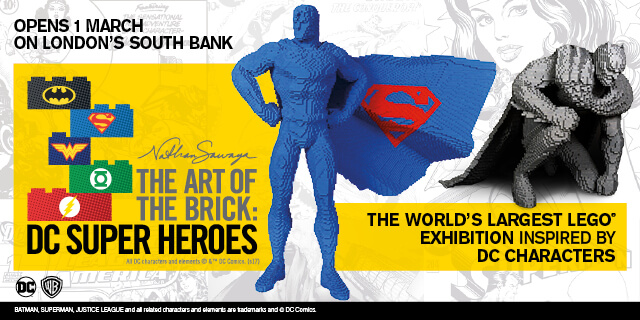 “The Art of the Brick: DC Super Heroes includes over 120 large scale exhibits made from over 2 million LEGO® bricks, all displayed in a purpose built space on London’s South Bank, just minutes from Waterloo Station.”