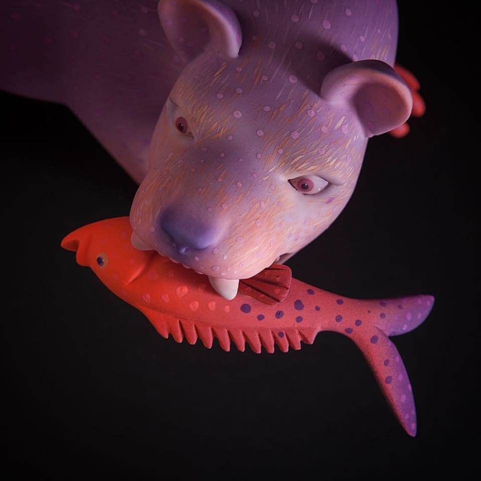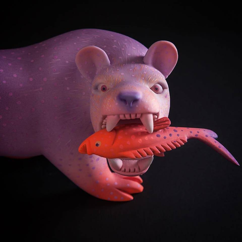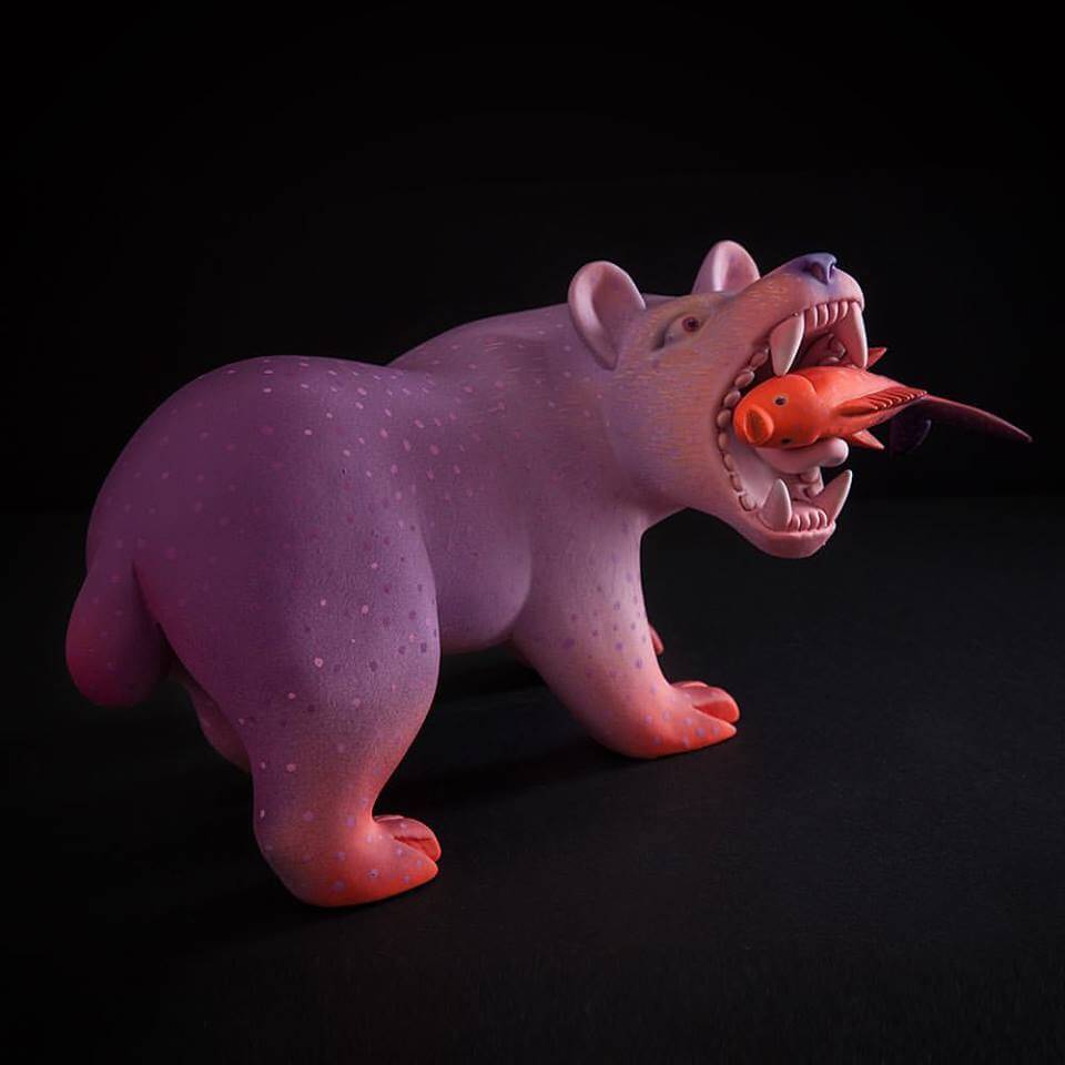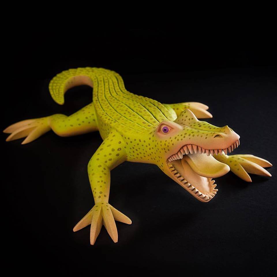Match made in heaven when Susano M & Mitote join forces to come out with the Arte en Madera series. Wooden sculptures with wildlife involved, the craftsmanship at its best and great to see Mitotes signature style adopted for this series. His forte with a vibrant contrasting blend of colours with wacky expressions got our jaws all the way to the ground once more. With Susano Morales Ramirez carving skills these are to die for especially the jaguar lord know how long each piece took. More of a reason why we featured Mr Mitote as one of the first The Toy Chronicle “Artist Spotlight” features.