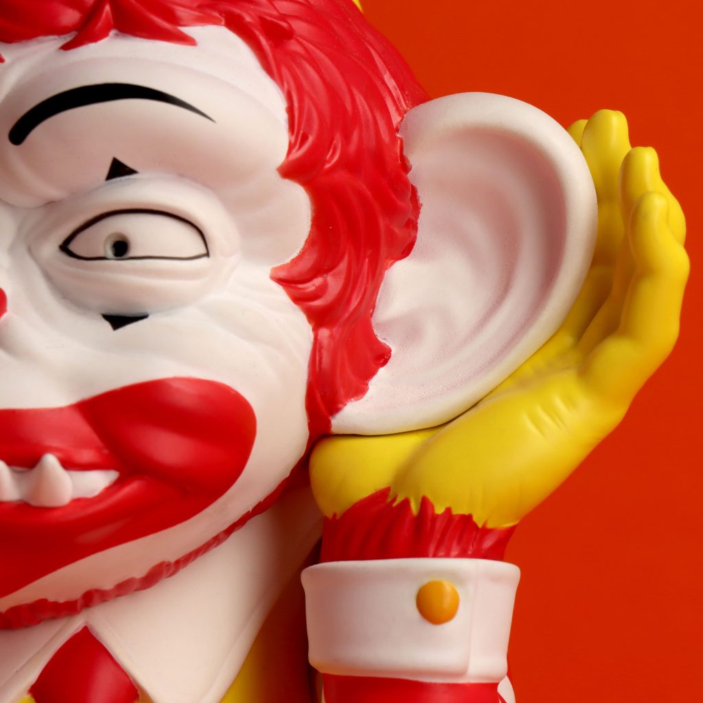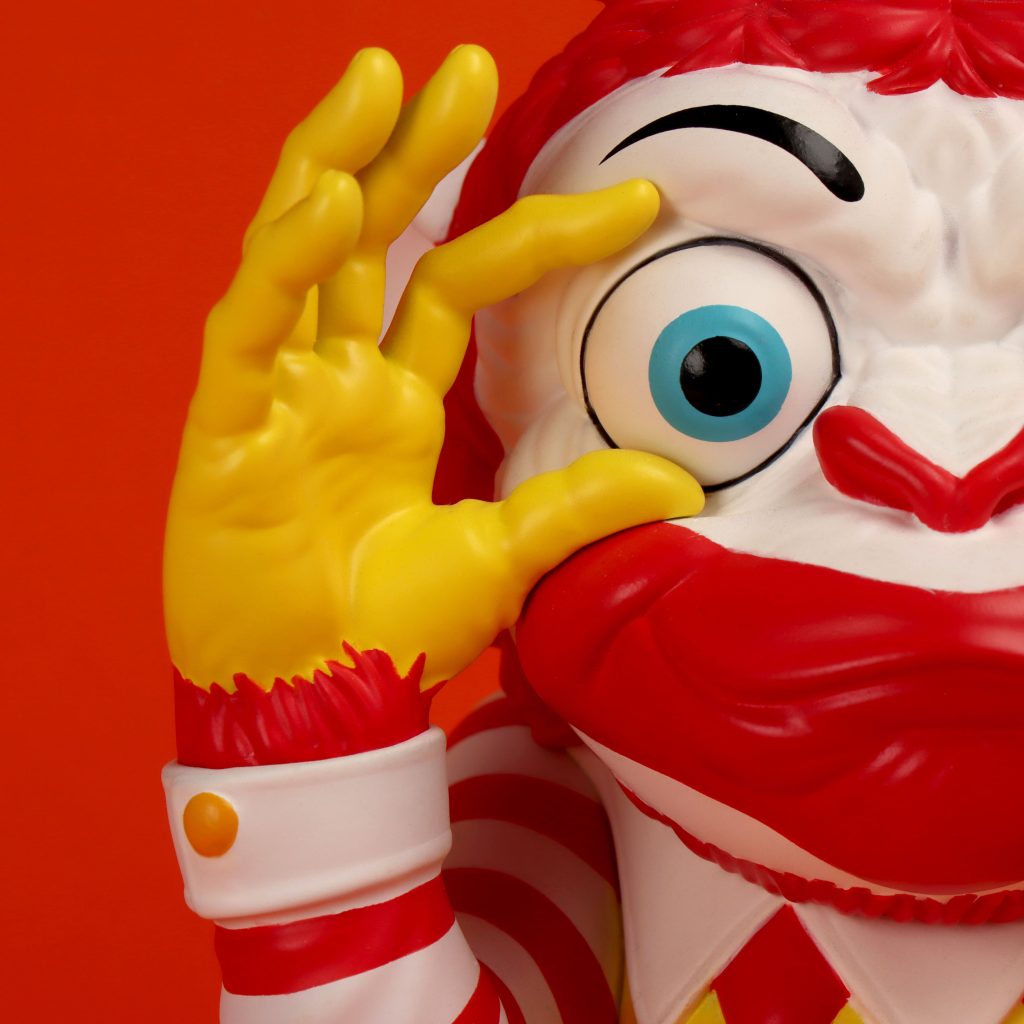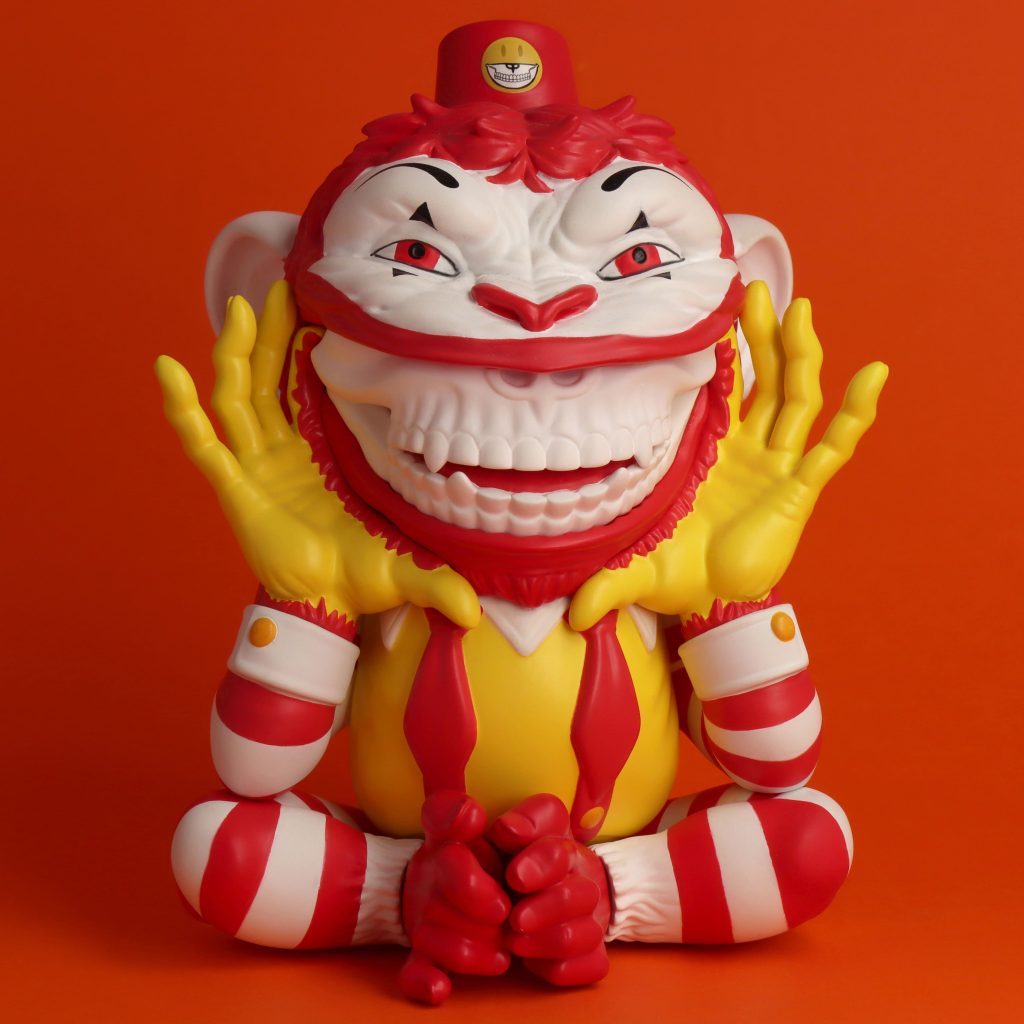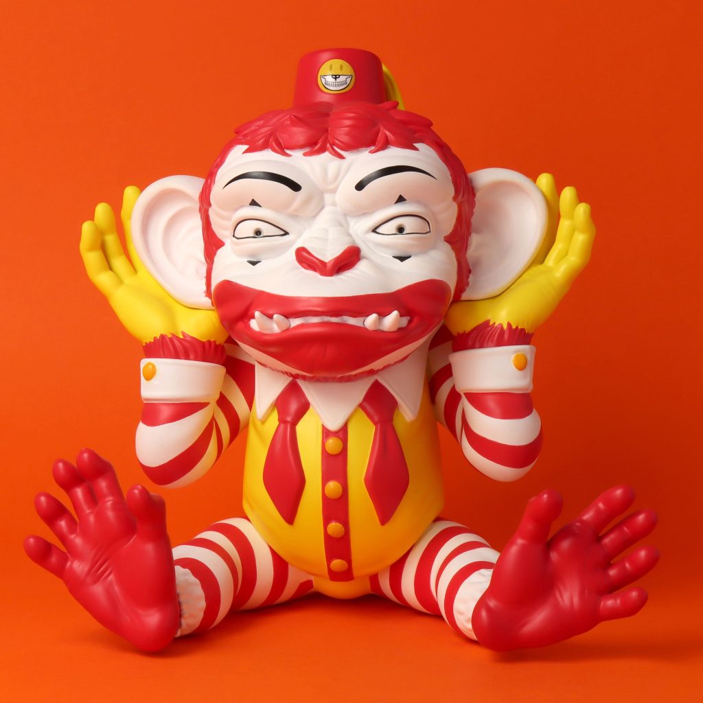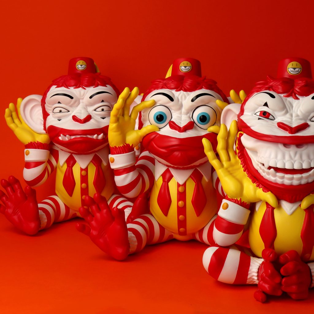 A couple of weeks back, Legendary brand and store Artoyz Golem brand united with Ron English to present to you “More Evil Monkeys! The set of 3 figurines takes the opposite view of these 3 symbolic monkeys which in this case do not seek to block their senses but are determined to show that they are on the lookout. As you will have understood, these figurines are a sharp criticism of today’s world and of the derivatives of social networks and the abuses that result from it: users who want to see everything, hear everything, and above all say everything. NOW they have taken on the love of the golden arches with this Ronald edition!