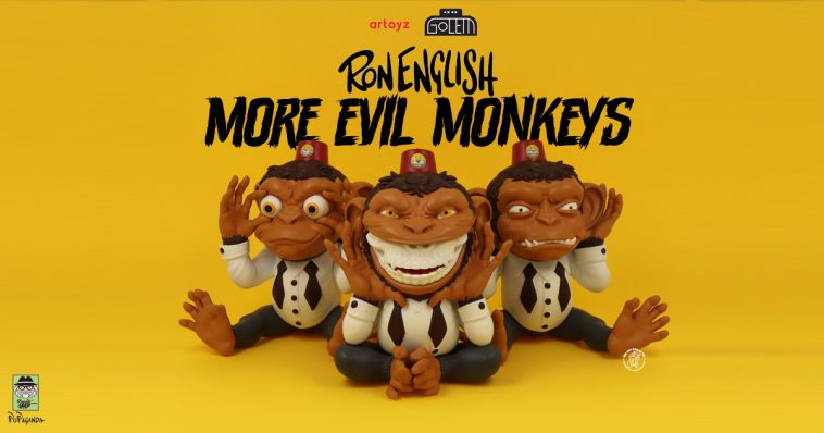 GOLEM is launching its More Evil Monkeys figurine with RON ENGLISH which will be available for sale on 08/06/2023.