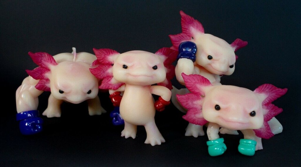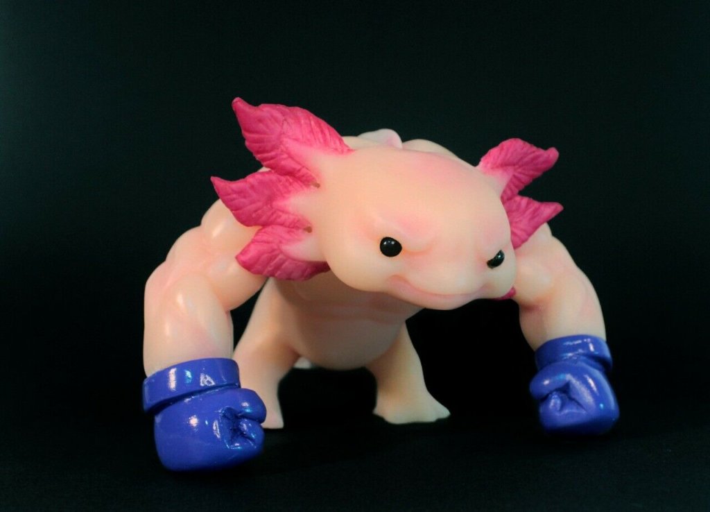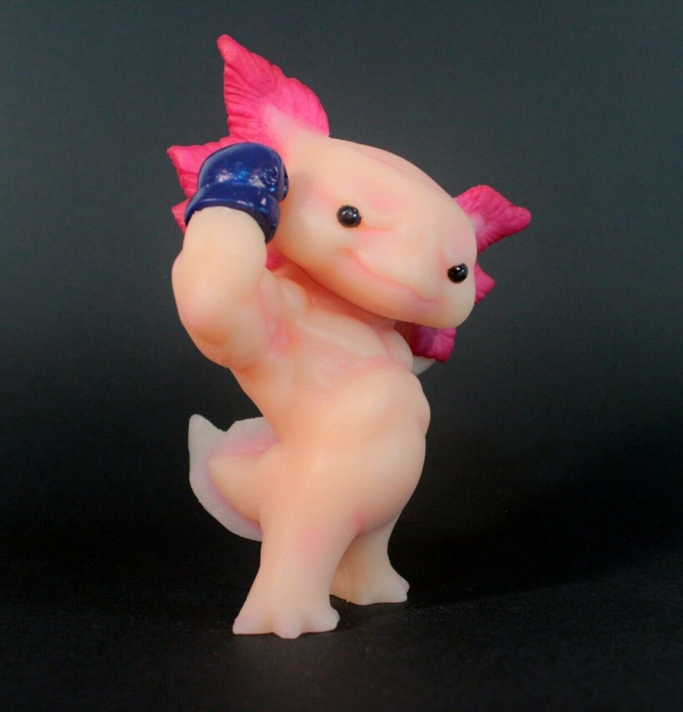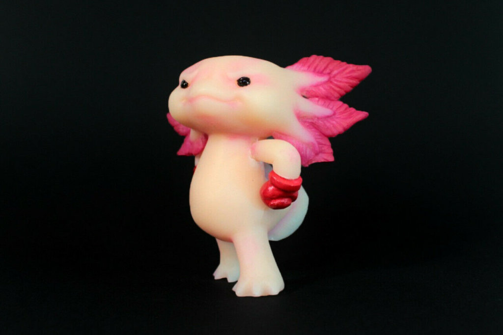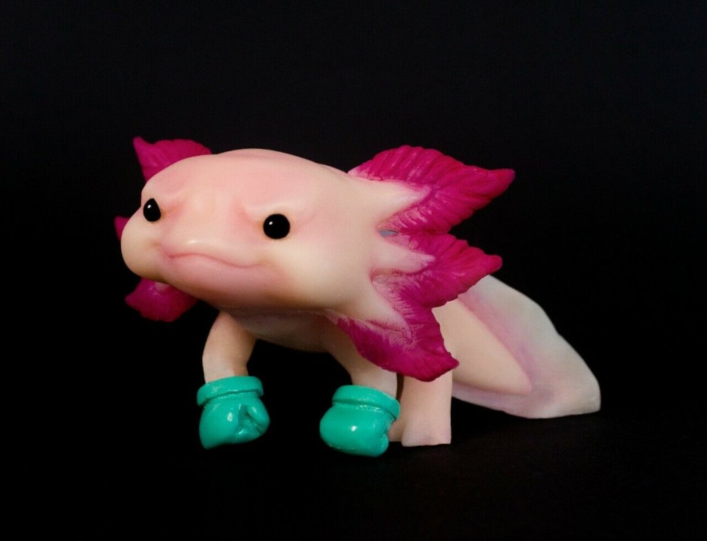Mexico based artist Santiago Landa Hernandez, is packing a punch with these Axolotl! Training hard they are ready for the pay-per-view main event! New kings of the pond? Who knows? All we know is the fact these four semi-rigid resin Art Toys from a limited series called the Axolomaquia saga; a fusion between the most adorable and endemic animal of México and the coolest and most famous team of martial arts brothers in history. We are loving the poses on each one and those facial expressions would have any boxer run for cover! HA.