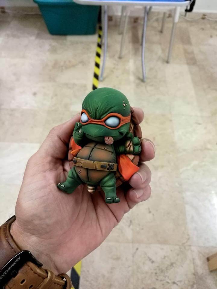 Chucho Rojas the incredible sculptor has hit us with a spot of cuteness! From the sculpting master who brought you guys the Calavera and the man behind sculpting many big licensed toys presented his latest own IP character to life, “Pitt” the yellow chap who only has his underwear to hide his little tinker back in 2016. Chucho is ready to give TMNT fans something to get excited about as he presented Baby Chibi Michelangelo first fully painted resin run a few hours ago via his social media. Great take on TMNT and paint application from Chucho! Cuties in a half shell anyone?