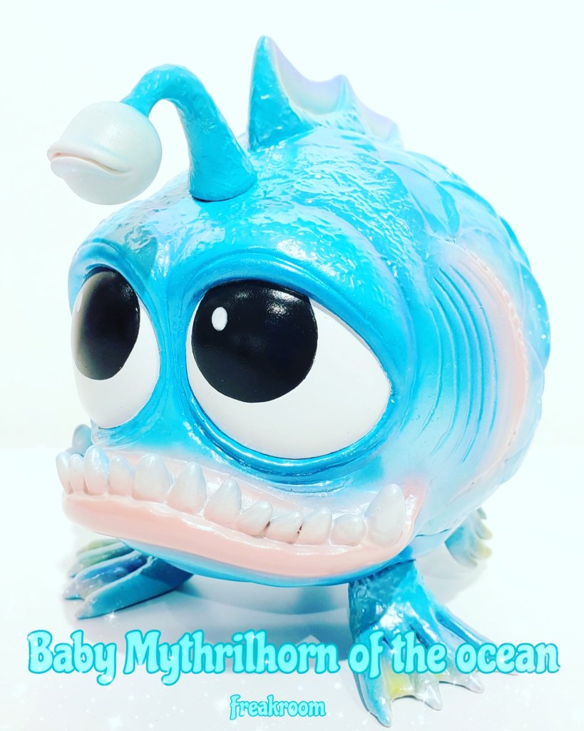What’s 4 inches, glows in the dark semi-soft and needs lovin? Its Freakroom’s BABY MYTHRILHORN OF THE OCEAN 兒瞳~ Aquarium edition. Yeah, boi, the rumours are true, the butt ugly MYTHRILHORN has finally found a mate and got his freak on. The birth of BABY MYTHRILHORN is here.