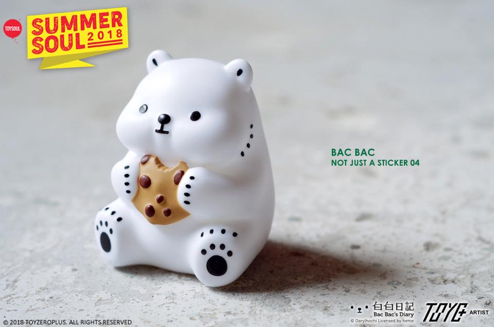 No broken promises here, Earlier on today, Darylhochi x ToyZero Plus presented Bac Bac Not Just A Sticker series 03 and as promised here’s 04! Bac Bac is BACK! The wait is over, last years runaway success the lovely polar bear “Bac Bac” will be joining the Summer Soul with ToyZero Plus this weekend, and Darylhochi is bringing MORE “Bac Bac Not Just A Sticker” series to their fans. With the 3rd version which features Bac Bac sad and frustrated emotional face now the 4th edition Bac Bac hasn’t been affected by the negative energy, but enjoying his big delicious cookie. Bac Bac Not Just A Sticker 03 and 04 will be available at ToySoul 亞洲玩具展 Summer Soul 2018.