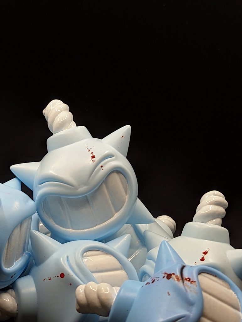 The countdown has started and the clock is ticking as this week will see Joe 13 of Unlucky Toys release the first wave of his “Bad Luck Bomb”. With guidance from the lovable Kyle Kirwan, which inspired Joe to make “Bad Luck Bomb” a reality. This INERT edition features a Light blue and white colorway adorned with the blood of enemies. Inspired by the color training munitions are painted to indicate they are inert. Check out that cheeky GRIN!