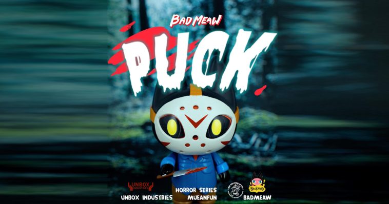 Don’t be afraid! It’s only ketchup…. well we think it is HA. Last seen at Summer Soul 2021 as a prototype, Mueanfun Sapanake’s hit character Blackhood Cat is transformed into BADMEAW Unbox is thrilled to introduce the latest release in the ongoing BADMEAW universe! Introducing PUCK! It’s like BADMEAW has been influenced by all the HALLOWEEN Friday the 13th” movies! Look at the heart! This weekend will be your chance to capture PUCK.
