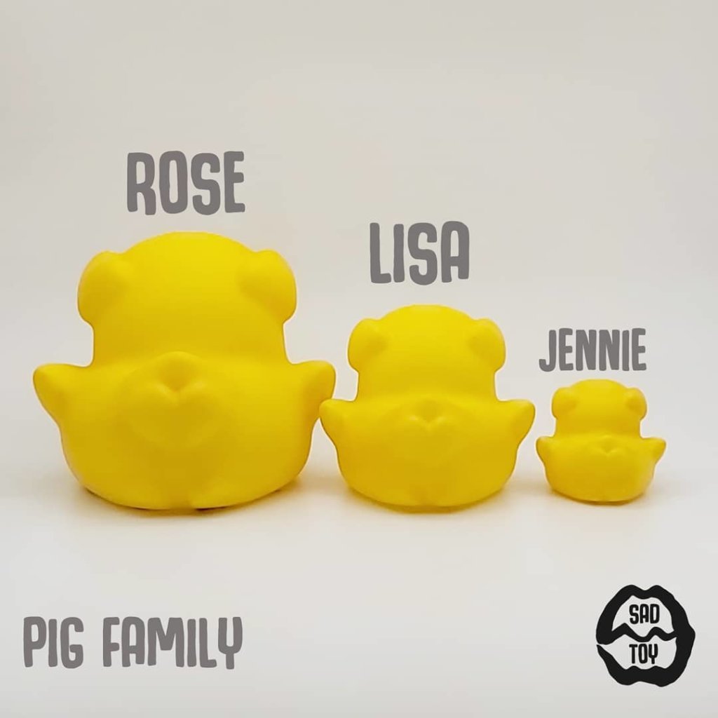 The Bathing Pig Family sofubi will be initially released at Taipei Toy Festival 2019 later this month (10/10-13/10). Available in three size formats. Jennie, the daughter of the family, measures in a 1.7inches (44mm). Lisa, the mother of the Bathing Pig Family, measures in at 2.8inches (72mm) and Rose, the father of the fam is 3.9inches (100mm).