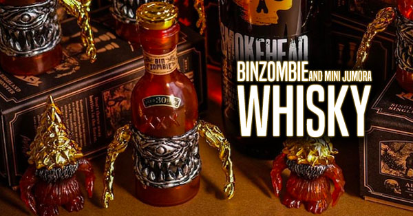 APOSTOYS is back to quench your thirst, your sofubi thirst that is. Care for a drink? This new edition of the BINZOMBIE and Mini JUMORA kaiju was matured in old oak casks to ensure maximum flavour. They comes complete with gold plating and original whiskey like package.
