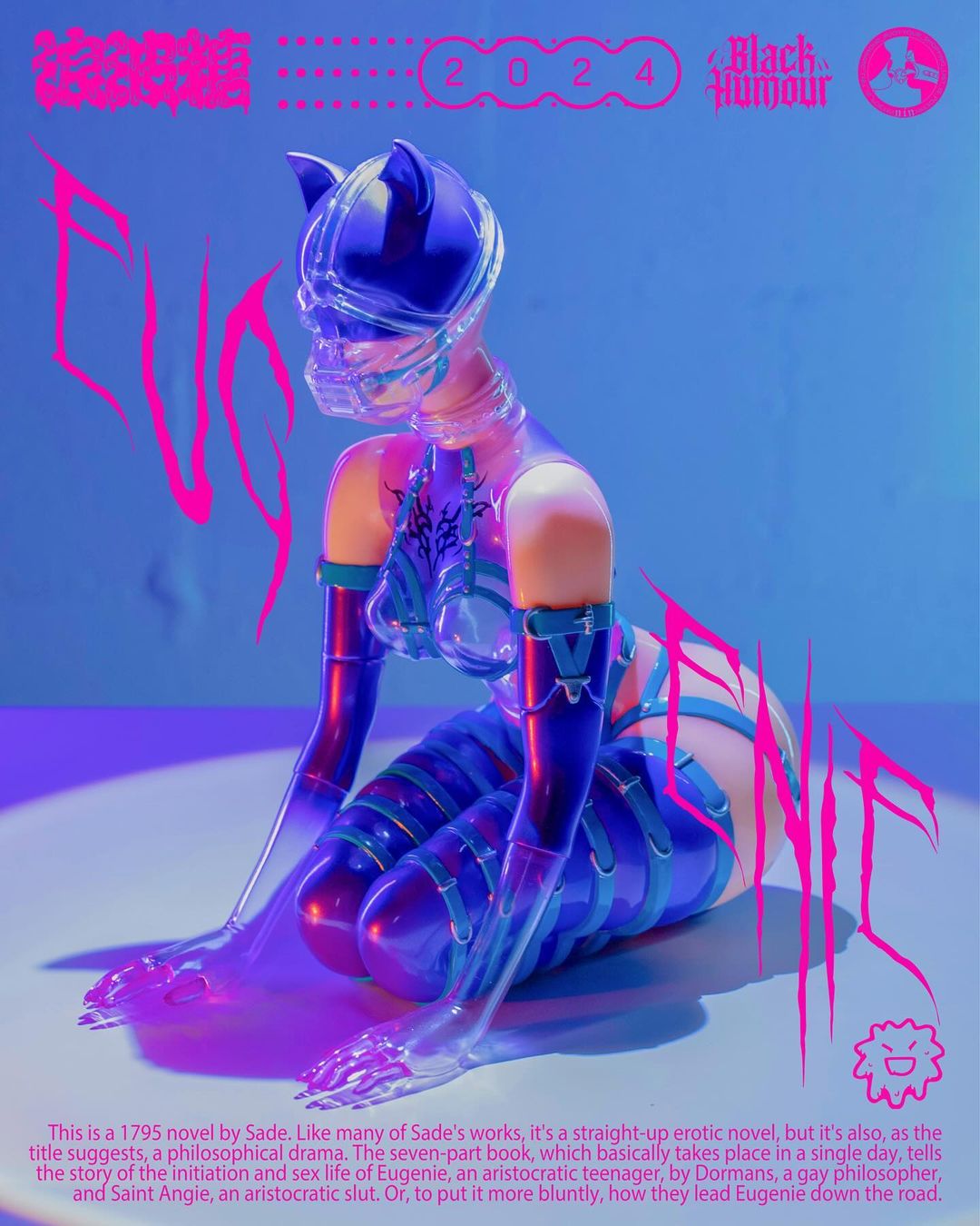 Known for the saucy S&M, Black Humour’s 黑色幽默 notorious signature and fascination with Shibari (Japanese Rope Bondage) “EUGENIE” definitely a head turner and never seen before in sofubi in BLACK-HUMOUR hallmark style! we can officially say More Adult Toys Than Your Mother!