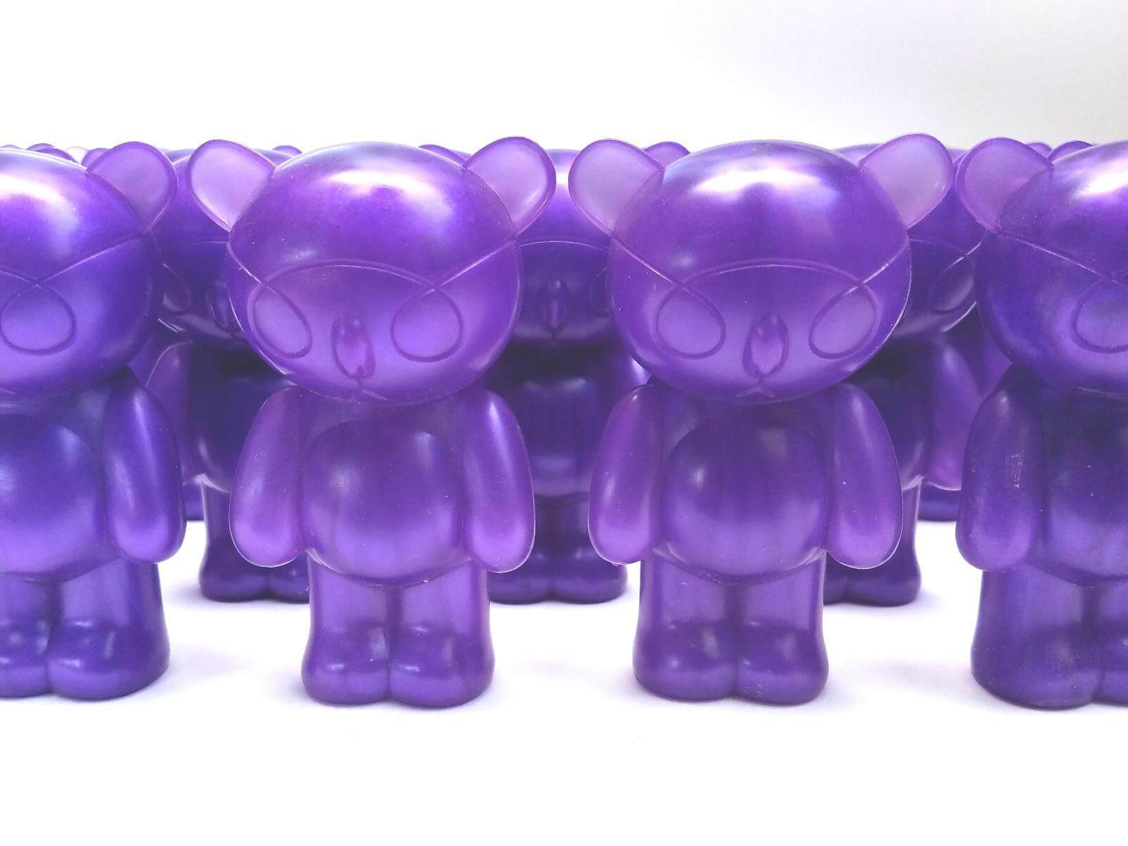 Back in June, Woot Bear and Dave Bondi teased us with his Wootbear figure, like we said before Dave Bondi was on a mission to make Woot Bear’s iconic logo which was designed by Nathan Jurevicius and turn him into a fully fledged figure.NOW this purple version which you can check out below reminded us of a large Jelly Baby gummy even MORE!, we should say you can’t eat it even though you might want to. DesignerCon are you ready for some purple love! Prince would be proud of Bondi the Woot – Purple Edition.