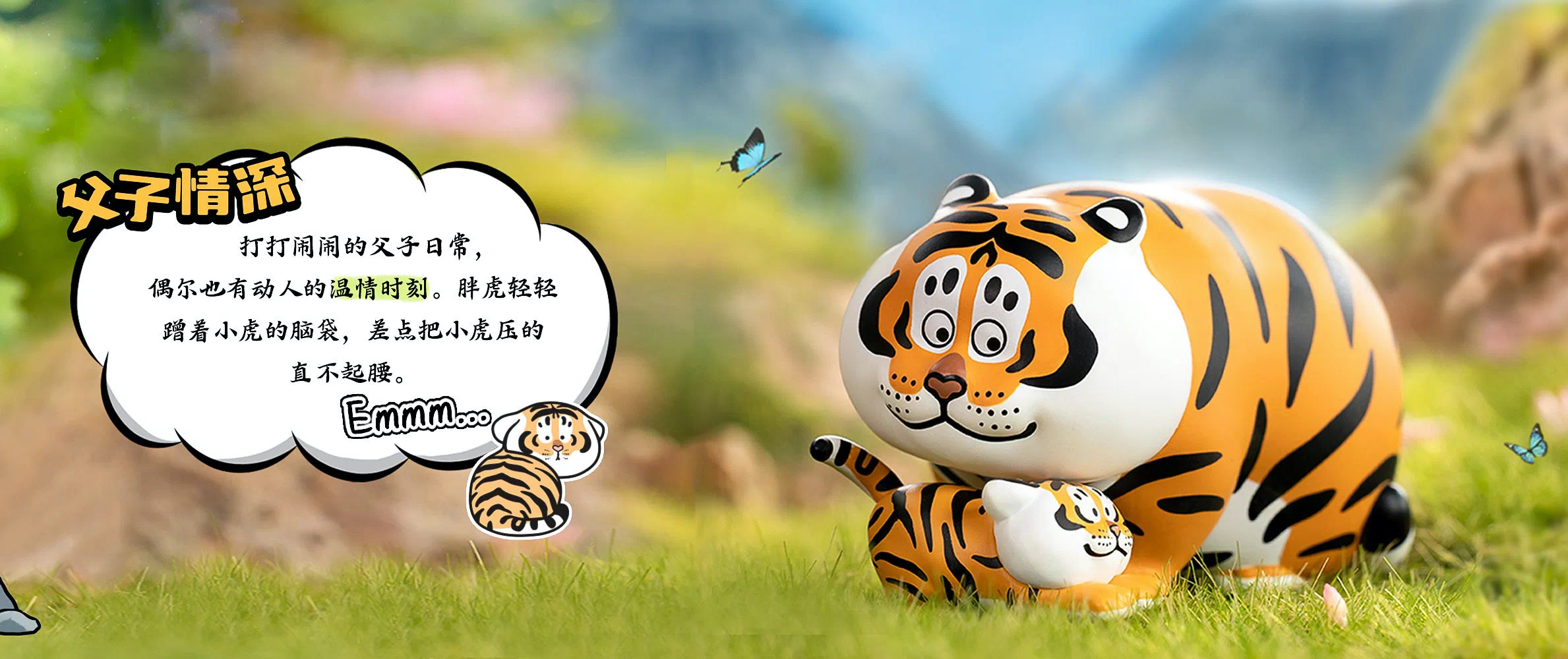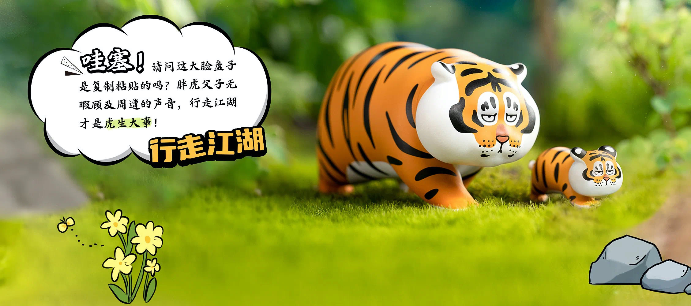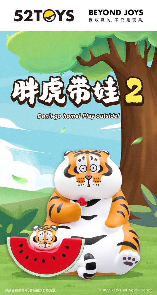 52Toys adds China-based artist 不二馬大叔 Bu2ma to the crew! over the years, 不二馬大叔 Bu2m has been named the Pied Piper of all things cubby. One of his famous characters the Fat Tiger has transitioned from many merchandises to resin figures and is now with the help of 52Toys an all-new 5th mini series! 不二馬大叔 Bu2ma distinctive and always copied style sees a playful Panghu Fat Tiger & Baby come together once again in this 2nd series together.
