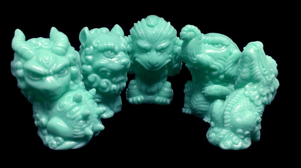 First we revealed the teaser HERE. Now, the new phase of Candie Bolton‘s OH MY! YOKAI series by Toy Art Gallery is about to drop. This time around the 2 inches gacha style figures created by Candie Bolton appear in a MINT Edition. A vibrant green soft vinyl cast seen before in TAG’s releases such as James Groman Fossil Pods (read HERE). A new LEGENDARY BEASTS line with all new characters;
