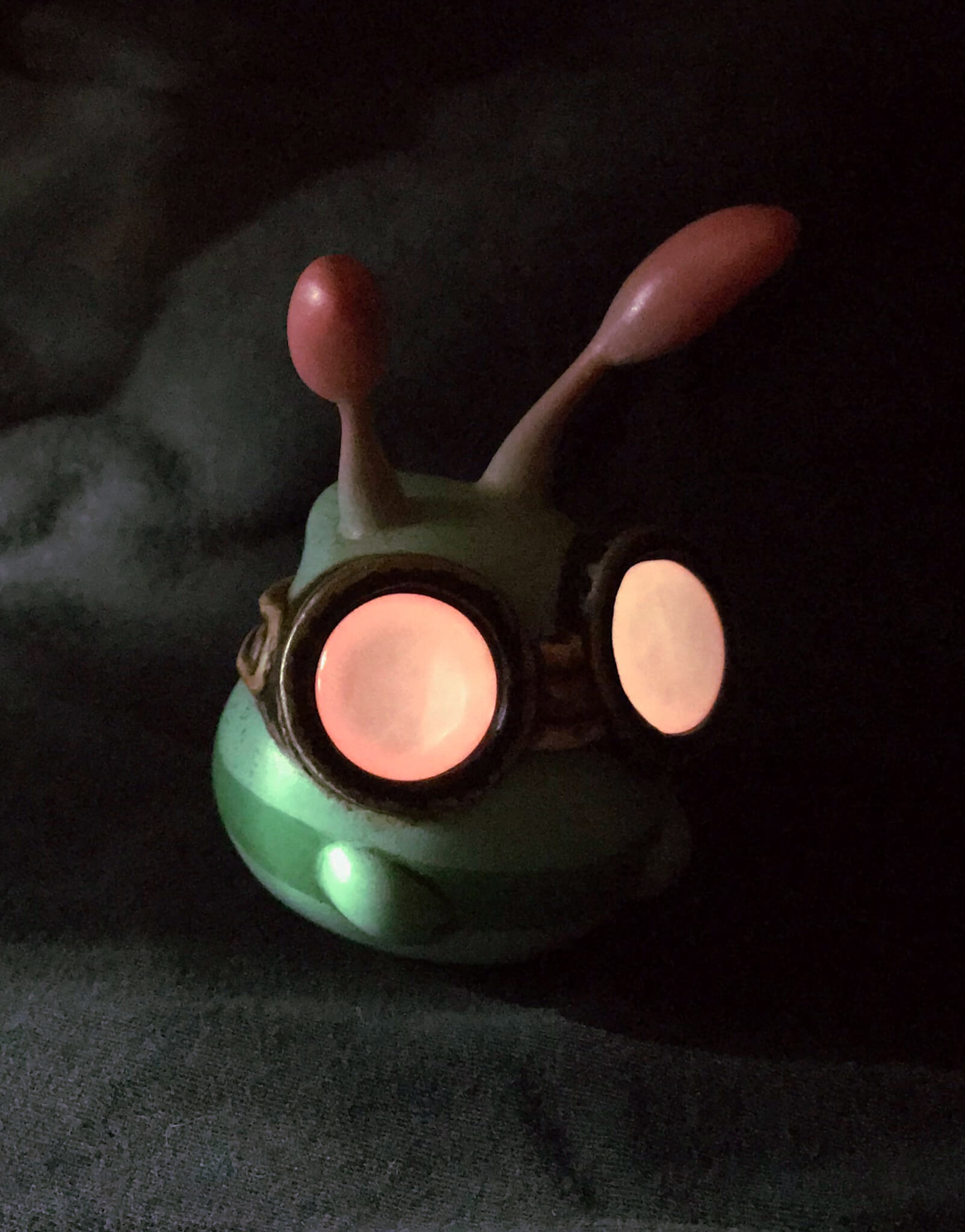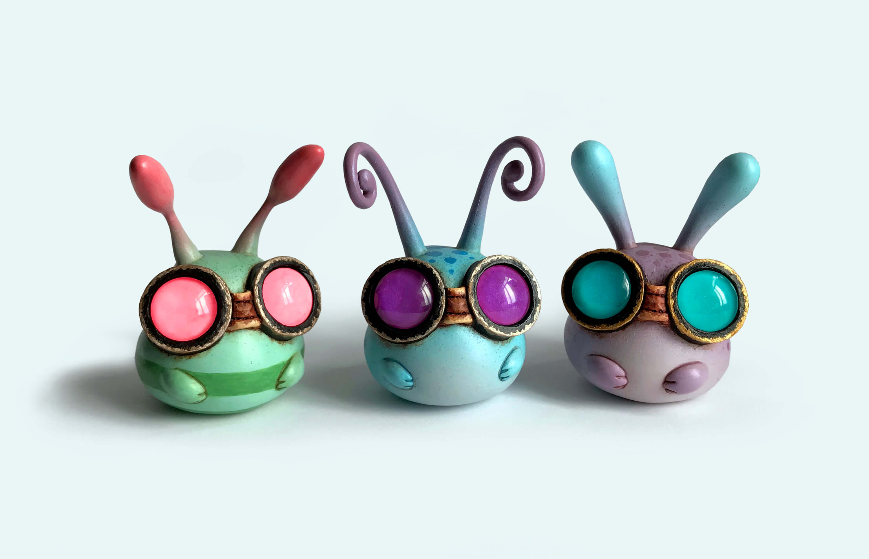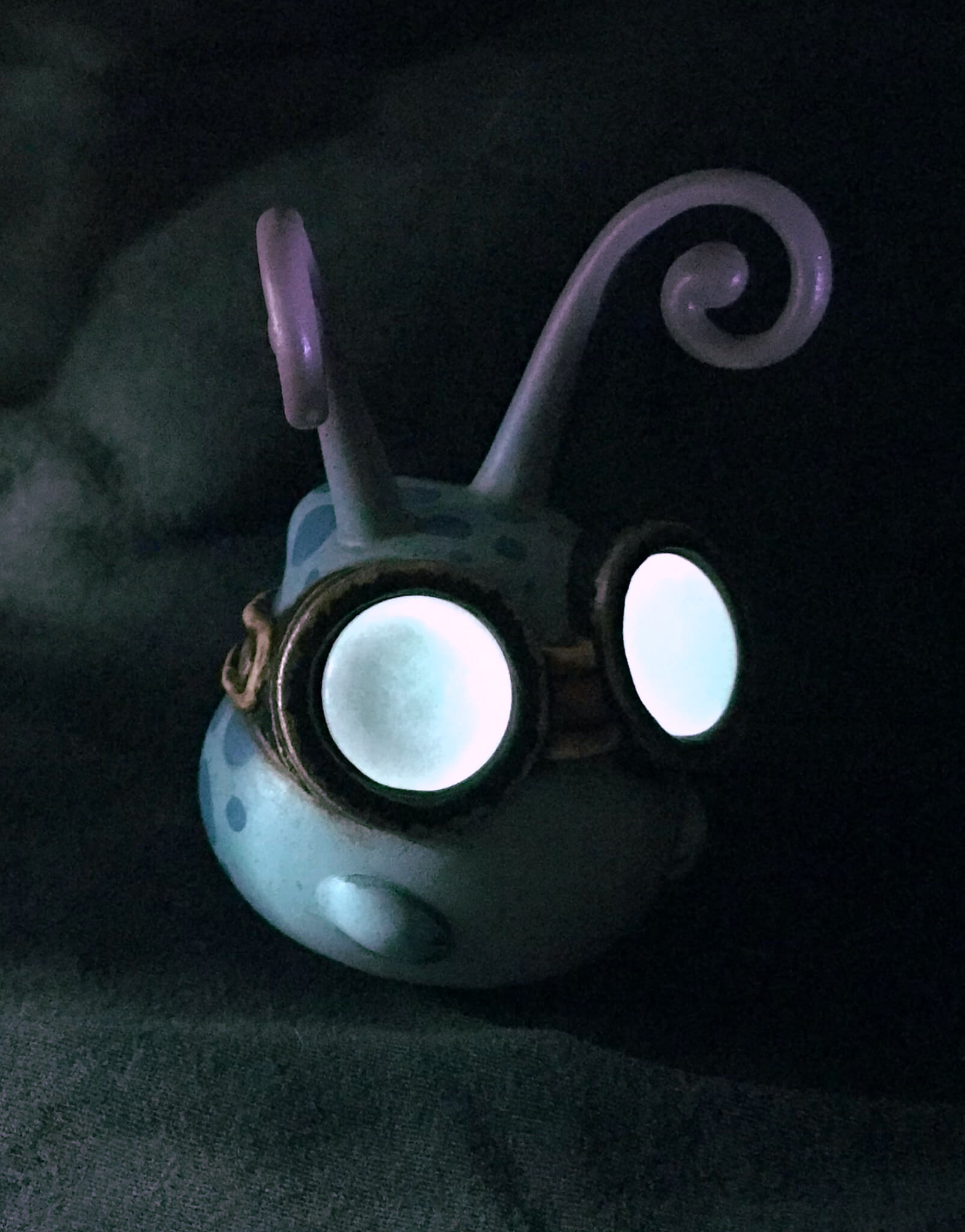 AWESOME SAUCE! Cassia Harries AKA Monster Mind Sculpts releasing some awesomeness at Designer Con 2017 at Circus Posterus. Glow in the Dark “Weebees” and BeeWees make it to the convention both as loveable as Cassia herself. Ember Weebees and BeeWees reminded us why we featured Cassia on TTC artist spotlight HERE. Cassia had us at GLOW IN THE DARK.
