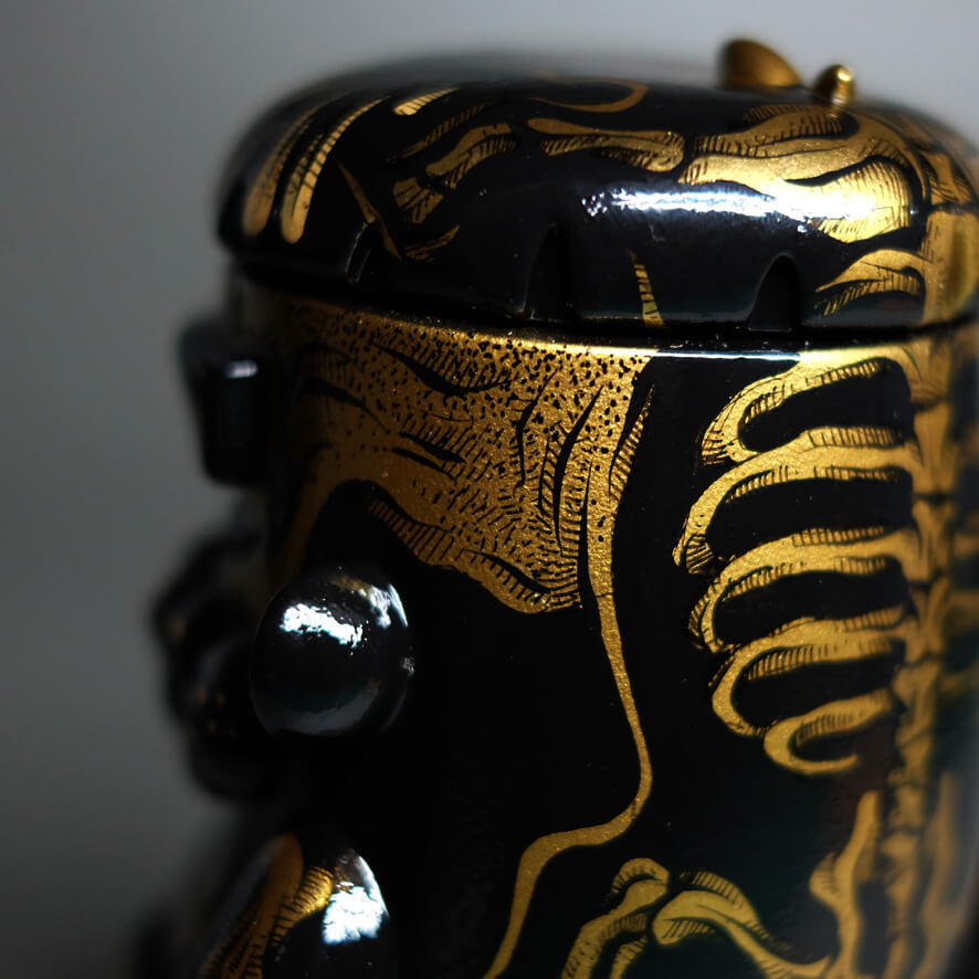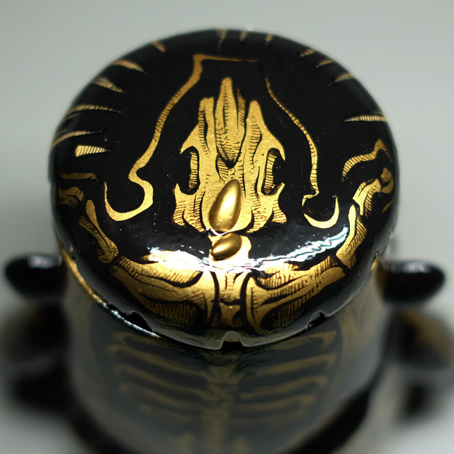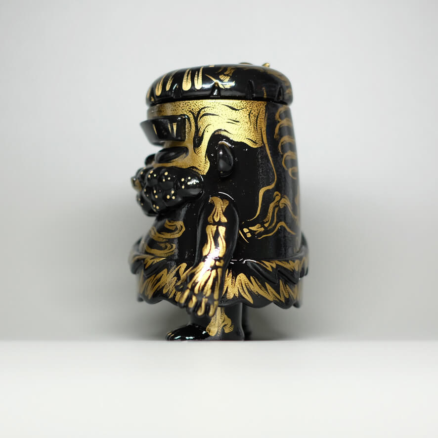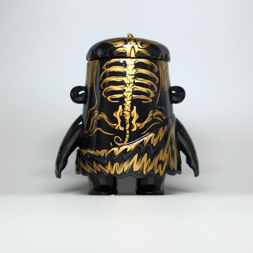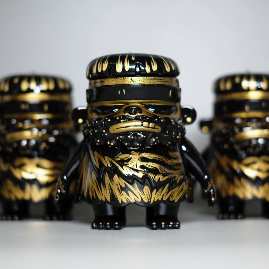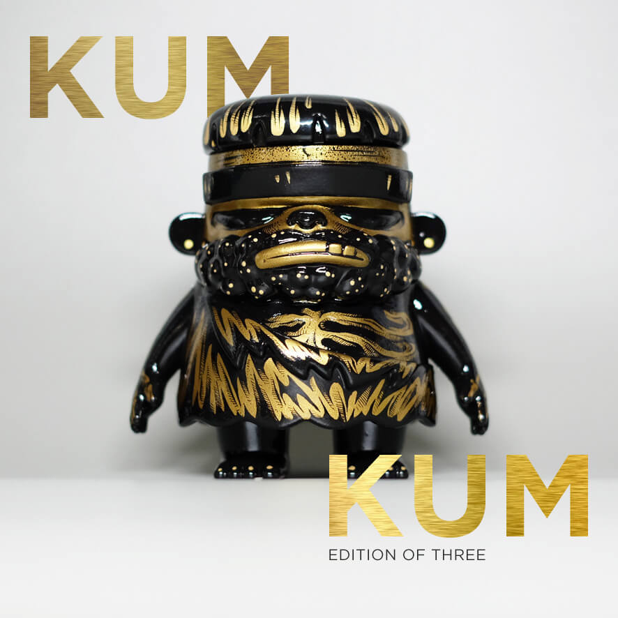 Paskalis Kunang AKA Mr Kum kum takes over Kong Andri’s soft vinyl edition of Caveman Sibatu with his signature black and gold style. The more you dive into Mr Kumkum’s customs the more you spot within his customs.