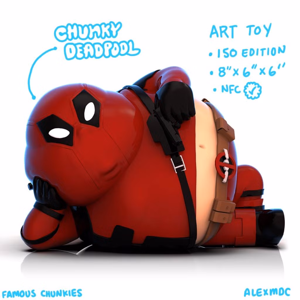 Alex Solis returns! the anticipated release is coming as Alex announces the return of his latest smash hit “The Famous Chunkies Series” in time for the launch of the Deadpool & Wolverine movie HA, we can guess which one ate all the popcorn! Please note, Chunky Deadpool wasn’t based on my body only my gut. Just over 9 years ago when Alex famous illustrations made the transition into art collectable figures comes Chunkie Deadpool with the famous pose included with the release.