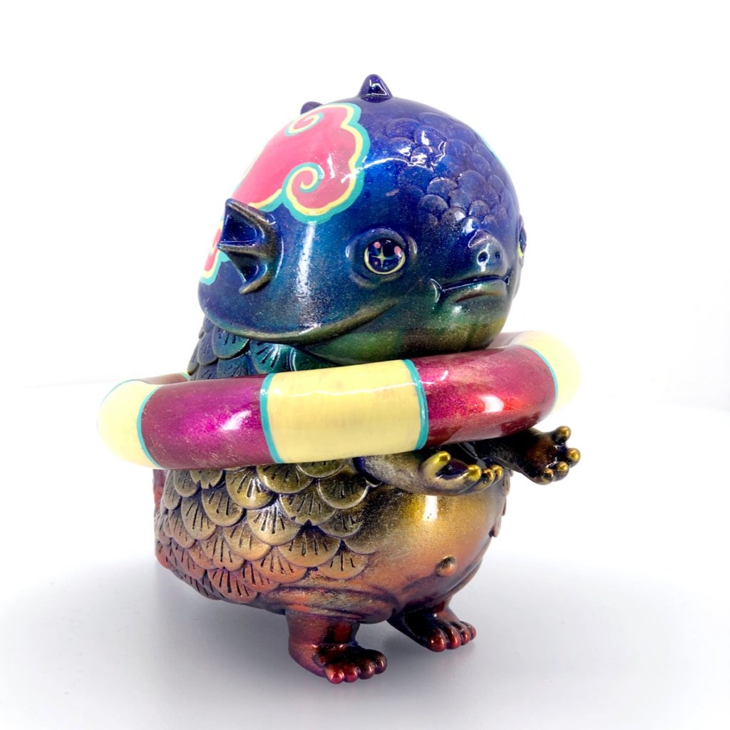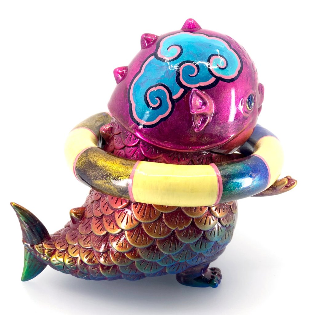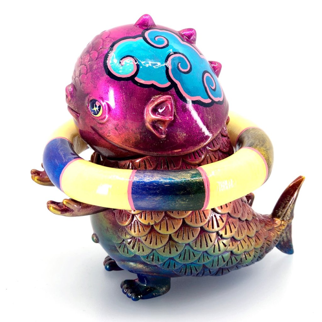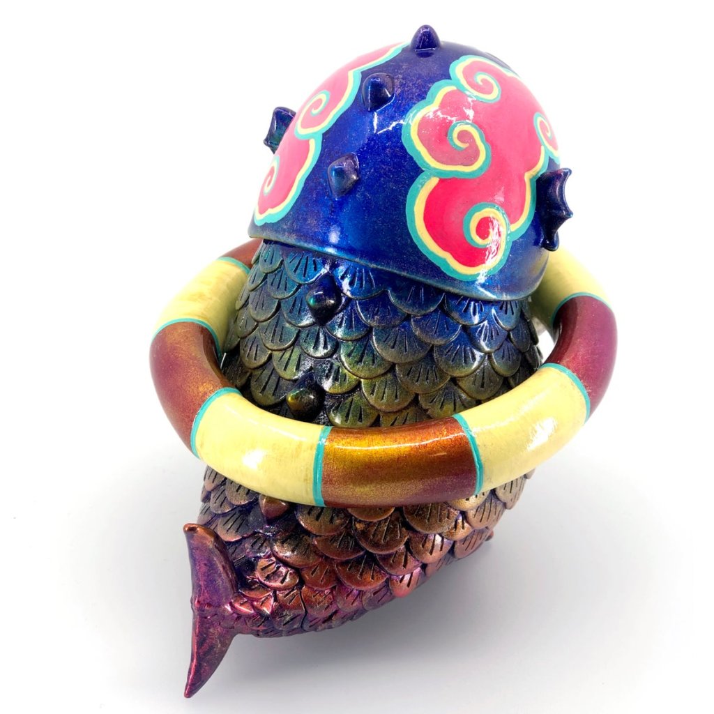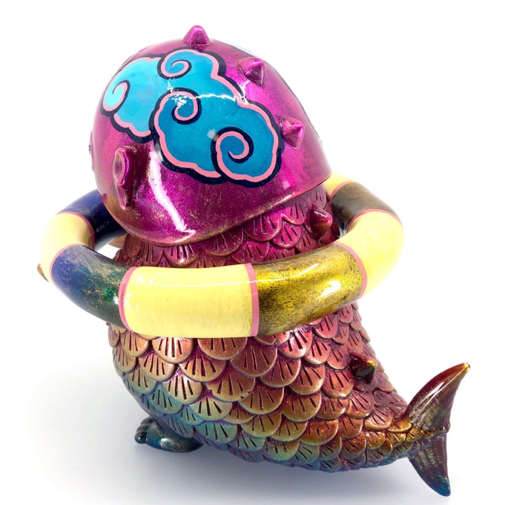 A new breed has magically appeared! Not really, its Candie Bolton adding her magical flair to Chino Lam’s “Red YU“. Two one of a kind CLOUDS RED YU have been hand-painted by Candie which both feature Candie’s signature clouds and metallic paint and gouache with a sparkly glossy clear coat. We guess the other fishes in the sea are going to be jealous of the sparkly skin on RED YU. Candie have now set them both free into the wild and can be yours TODAY.