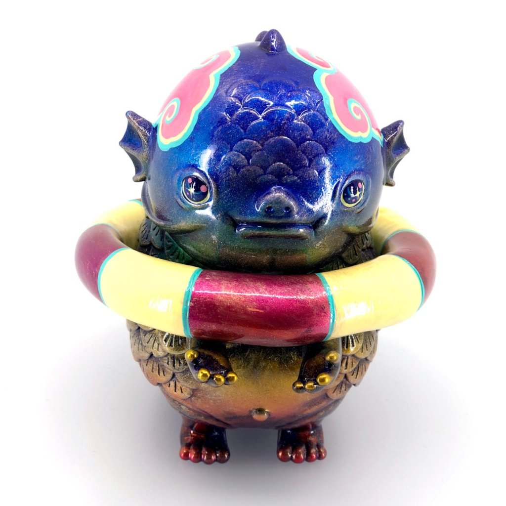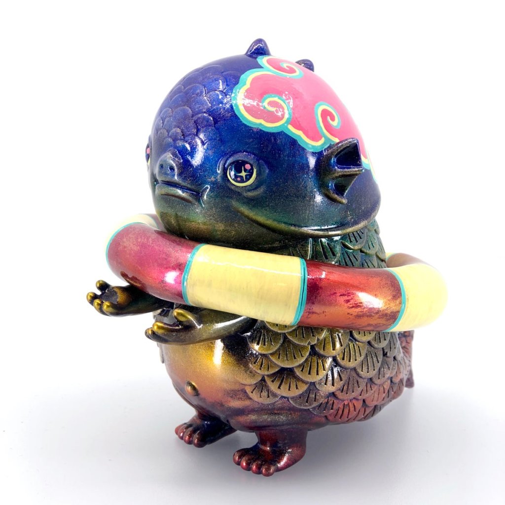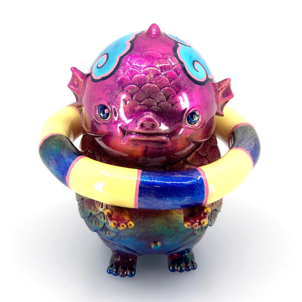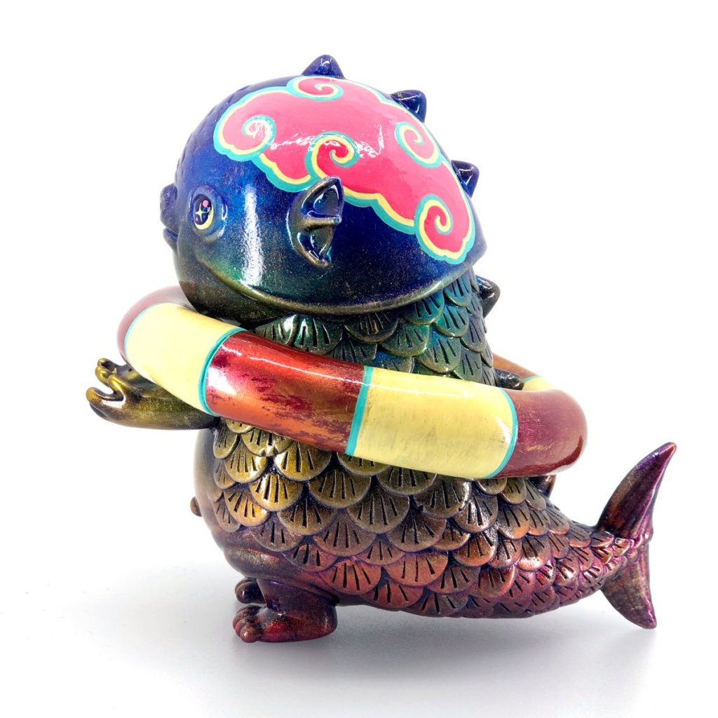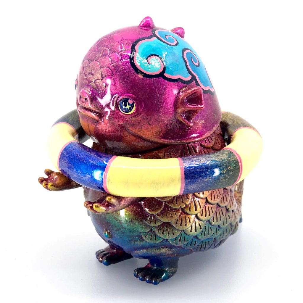 A new breed has magically appeared! Not really, its Candie Bolton adding her magical flair to Chino Lam’s “Red YU“. Two one of a kind CLOUDS RED YU have been hand-painted by Candie which both feature Candie’s signature clouds and metallic paint and gouache with a sparkly glossy clear coat. We guess the other fishes in the sea are going to be jealous of the sparkly skin on RED YU. Candie have now set them both free into the wild and can be yours TODAY.