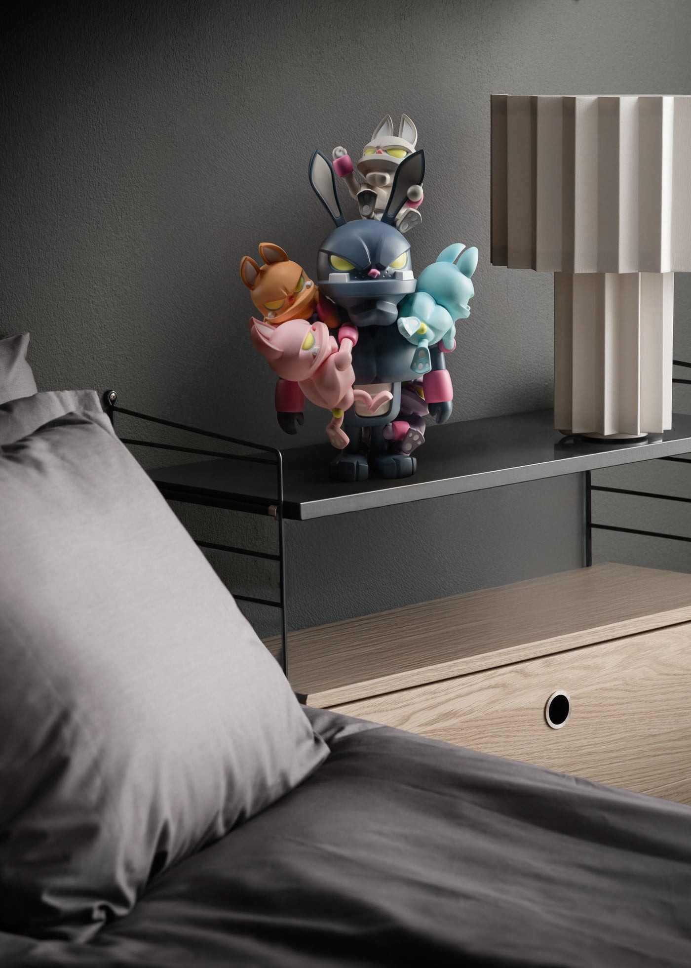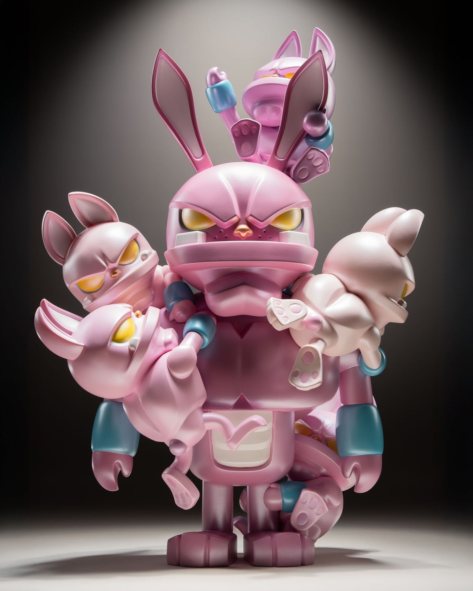 Handcrafted in premium vinyl, Burnout depicts a radiant spectrum of worries circling paw! like a typhoon, draining all the colour out of the towering grey monkeyrabbit. This is a sculpture about being pushed to a breaking point and finding a way to fight through the storm.
