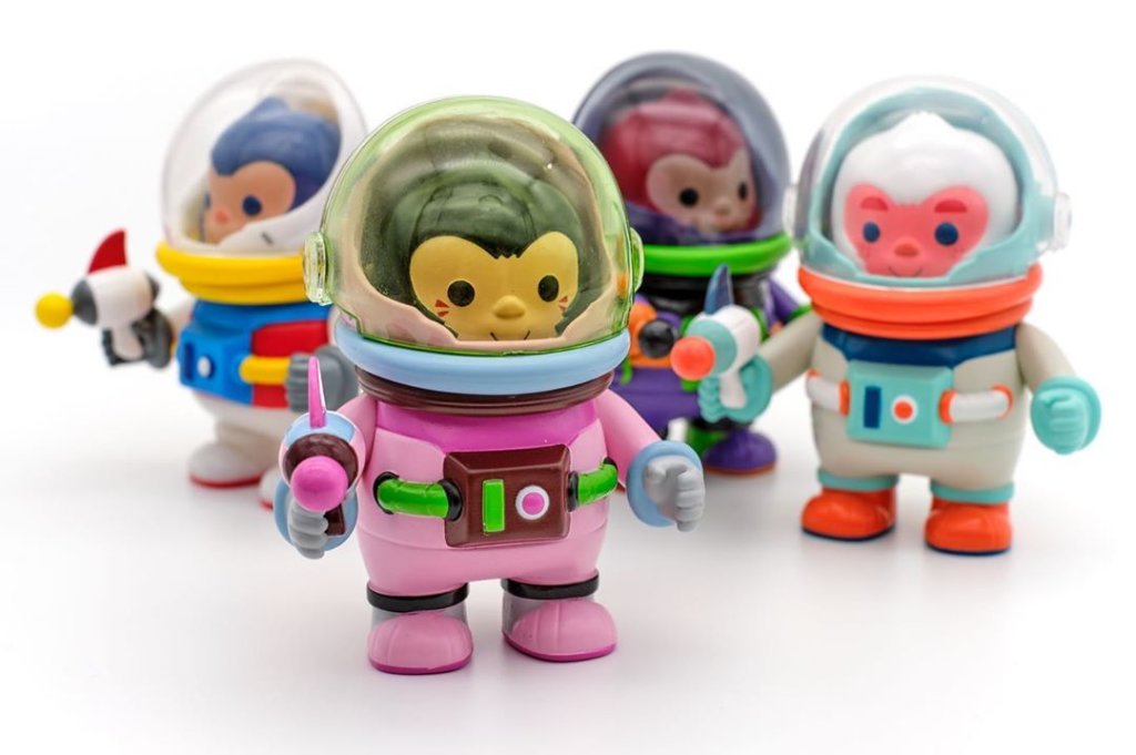 Of the four Coco the Astrochimp that were originally released, two version remain in stock at myplasticheart. Eva and Nerf are both available on myplasticheart for $69.99 each (about £56). Those are the purple & pink Astrochimps pictured below. These guys stand at 3.5inches and are made from soft vinyl.