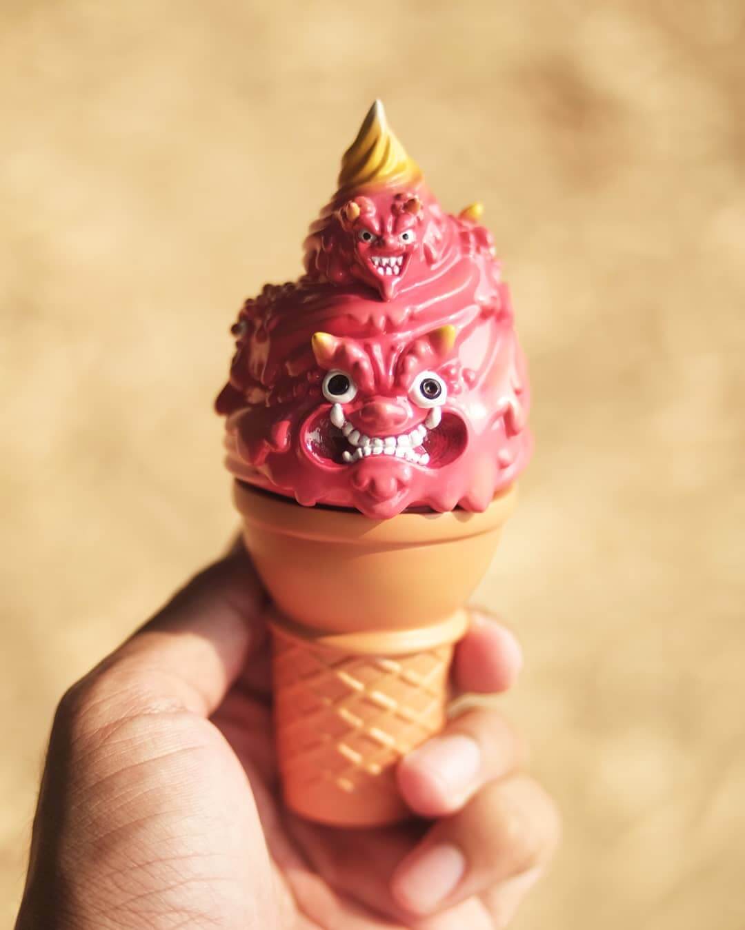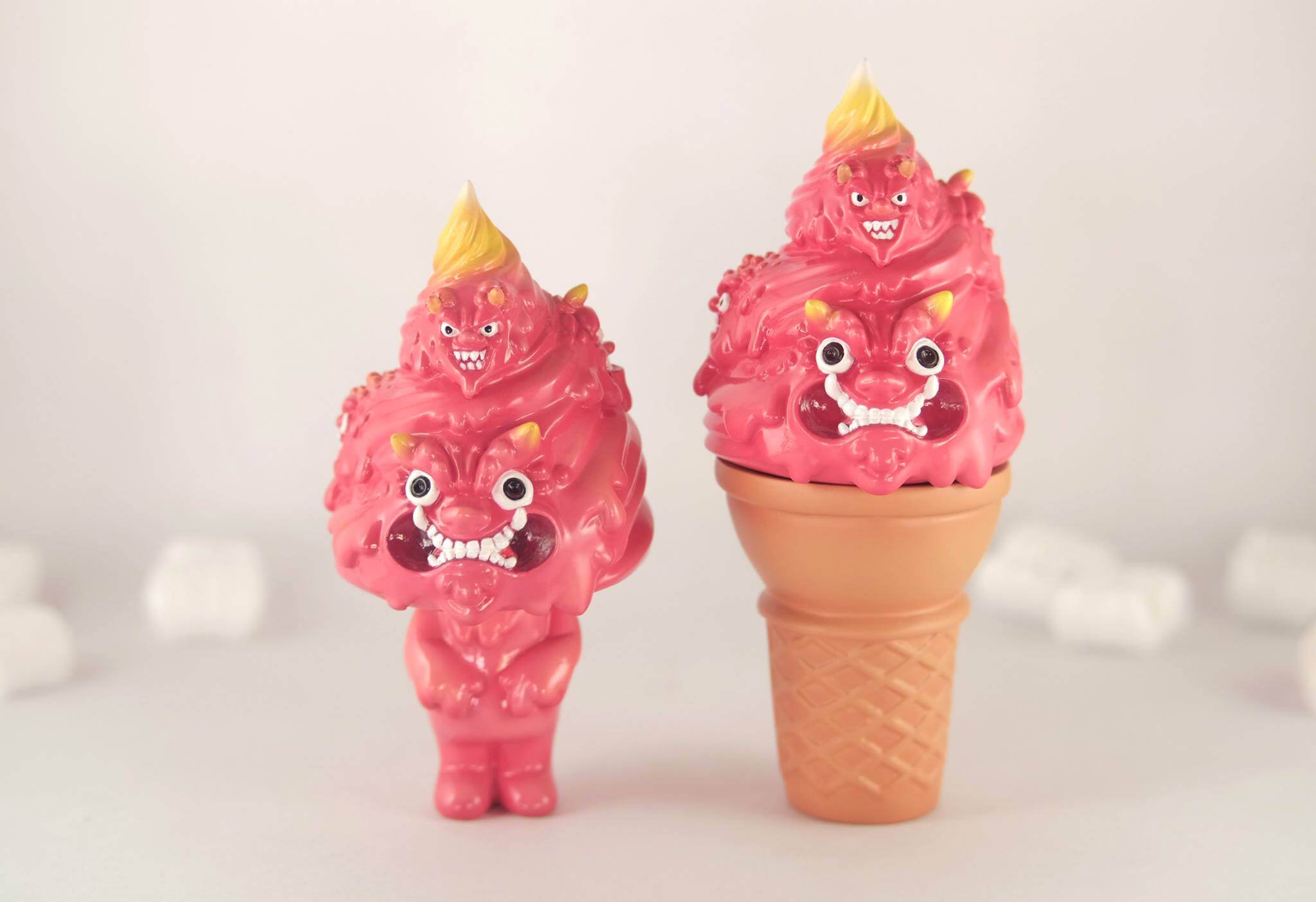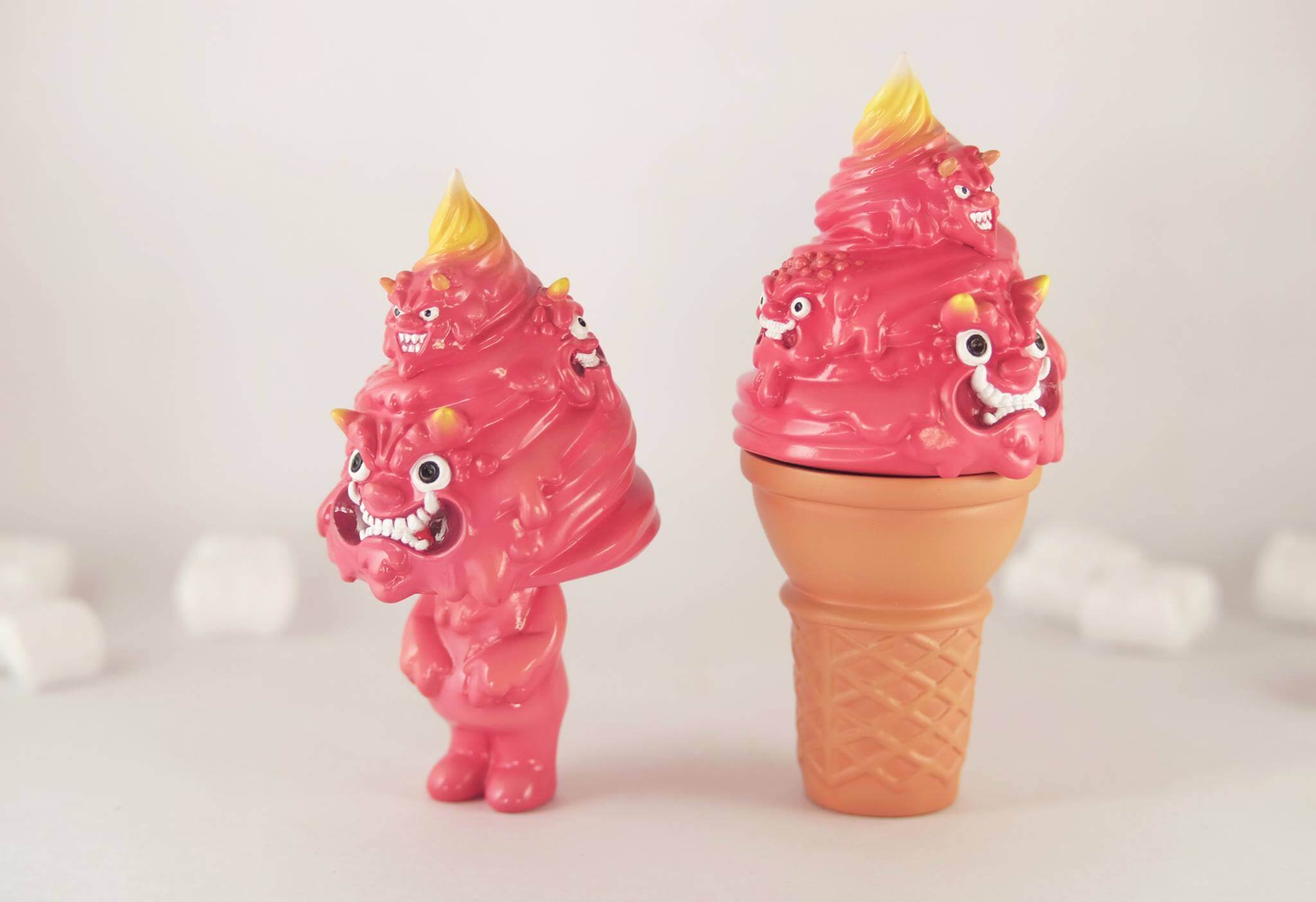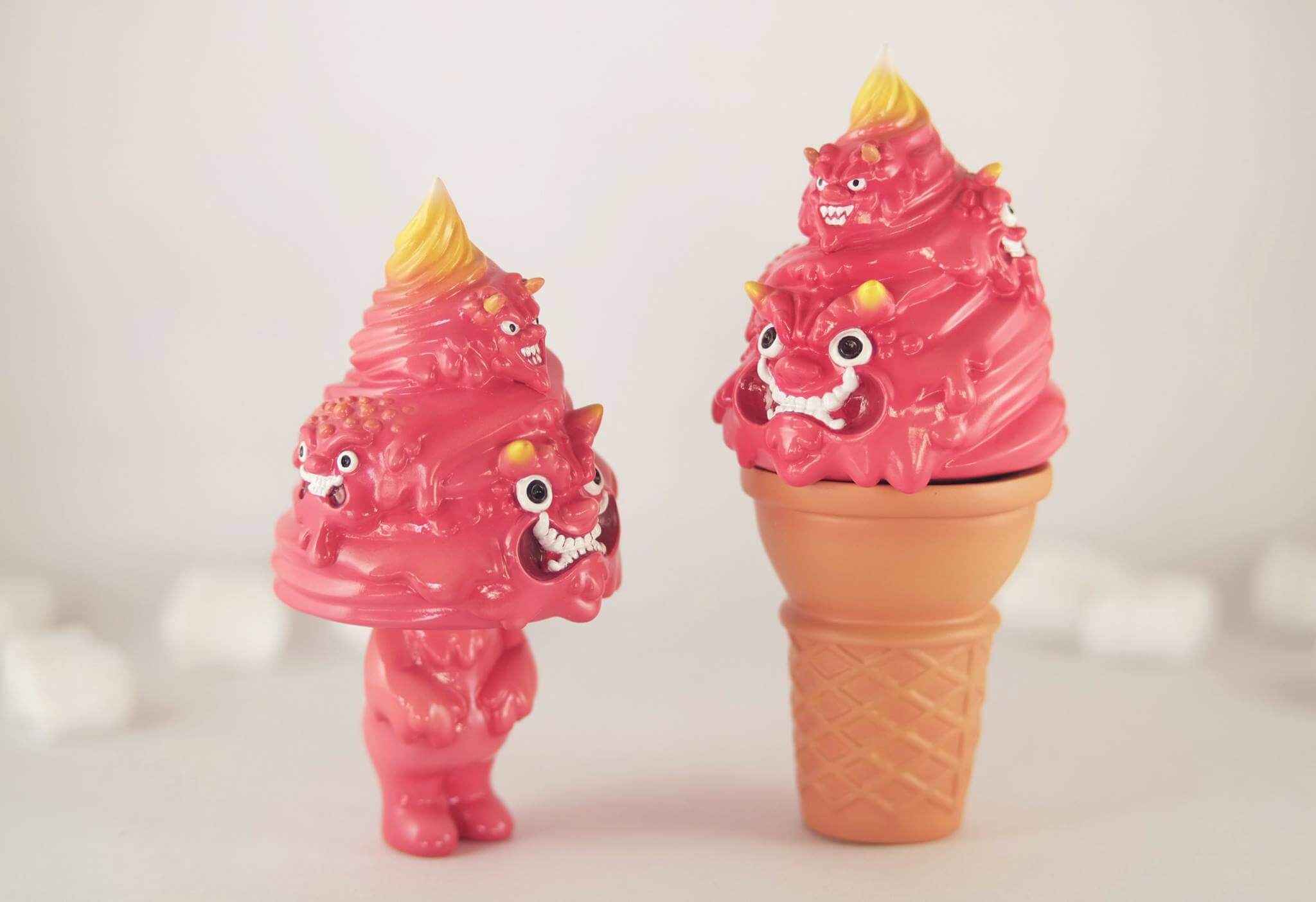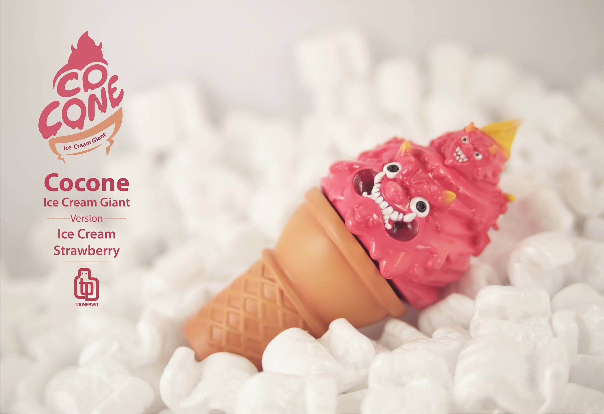 A couple of weeks ago we showed you the prototype in the late stages of Thailands Toonpawit “COCONE” HERE. Today “Toonpawit” who brought you last years smash hit Minoju and Mini Minoju resin figures has been working on a new figure “Cocone The ice cream of evil”. Mixing Thai mythology and tradition with the wonderful world of ice-cream, yum? A cocktail of flavours that’s for sure but we wouldn’t recommend you to lick it. Today he brings you the first edition and the all-important pre-order date.