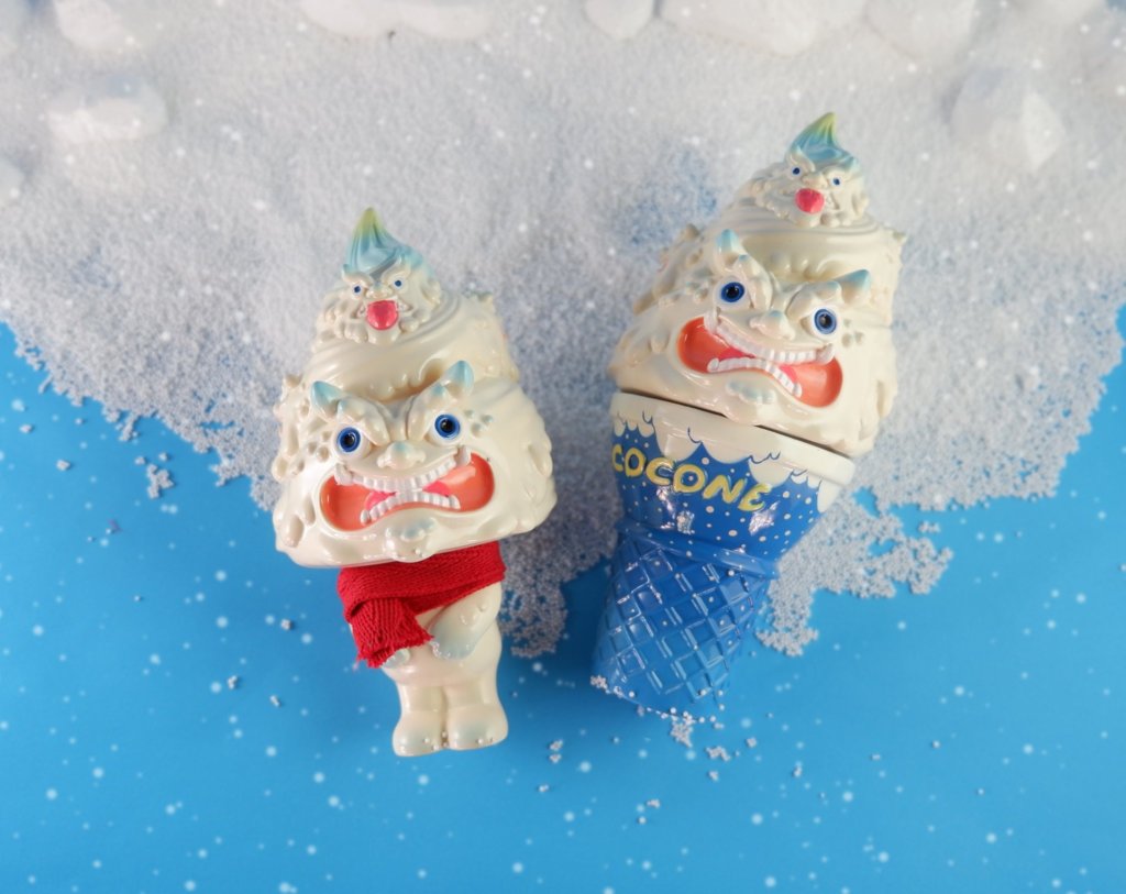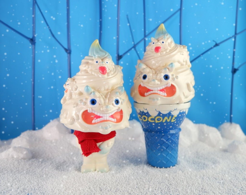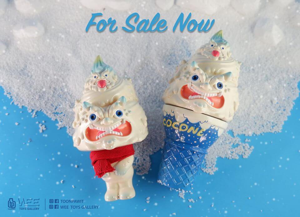 Thailands Toonpawit x WEE Toys Gallery are ending the year with a special flavour of “COCONE” for the Winter season. Never too cold for Ice-cream right? Like we said previously, Serving you up with a new flavour is Toonpawit! Do you guys remember “COCONE” and the artist who brought you last years smash hit Minoju and Mini Minoju resin figures? If not click HERE. Thailands Toonpawit has just surprised us with the news of a VINYL version of COCONE. With a joint venture with our buddies at WEE Toys Gallery making the transition from resin to VINYL. Mixing Thai mythology and tradition with the wonderful world of ice-cream, yum?