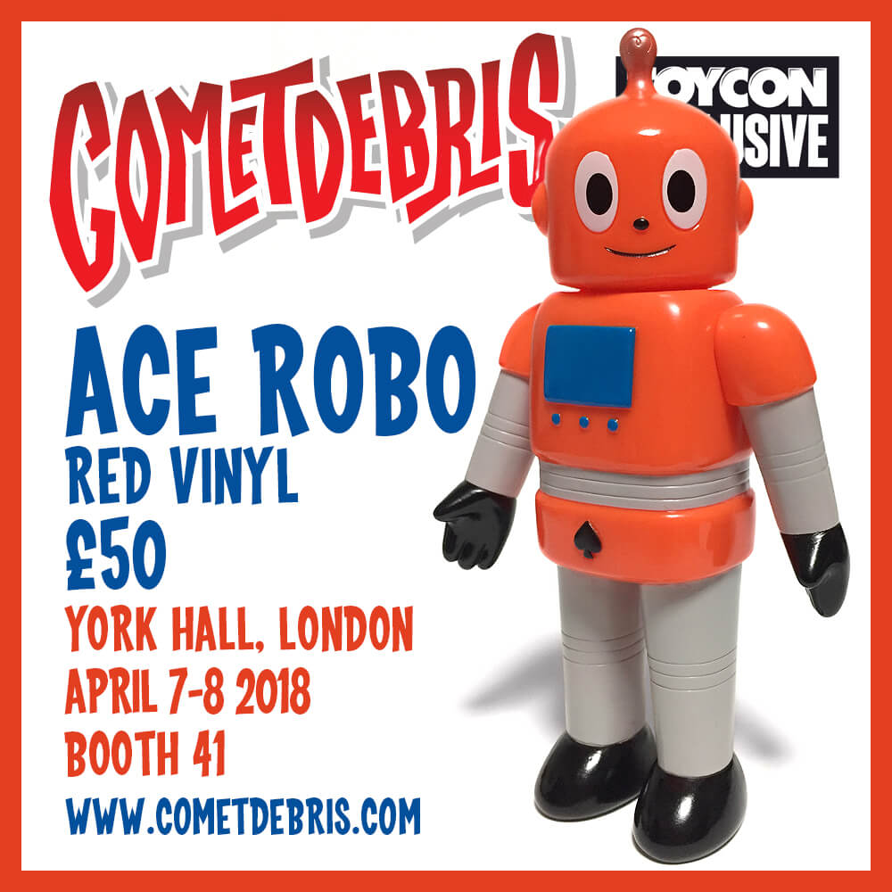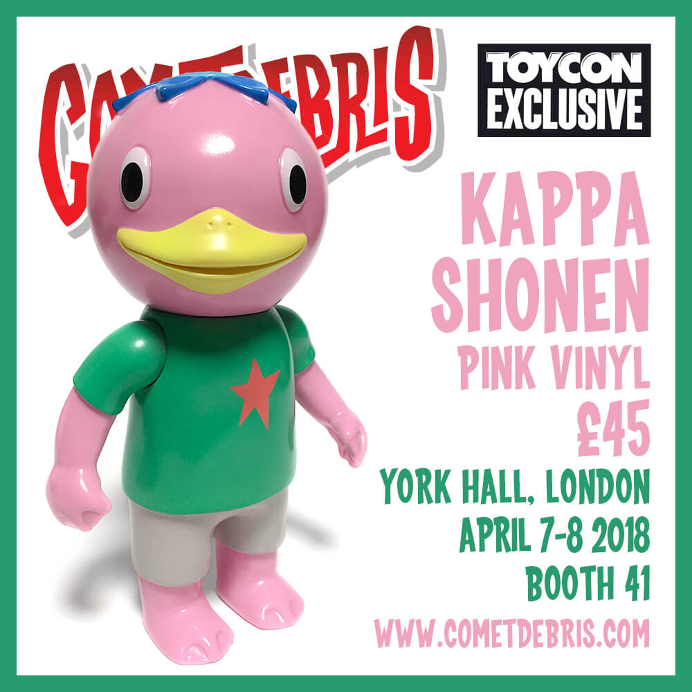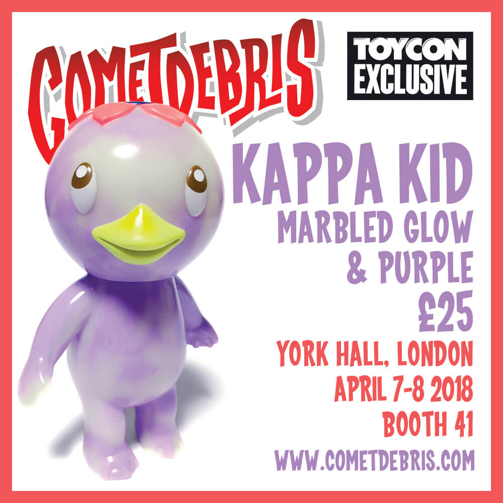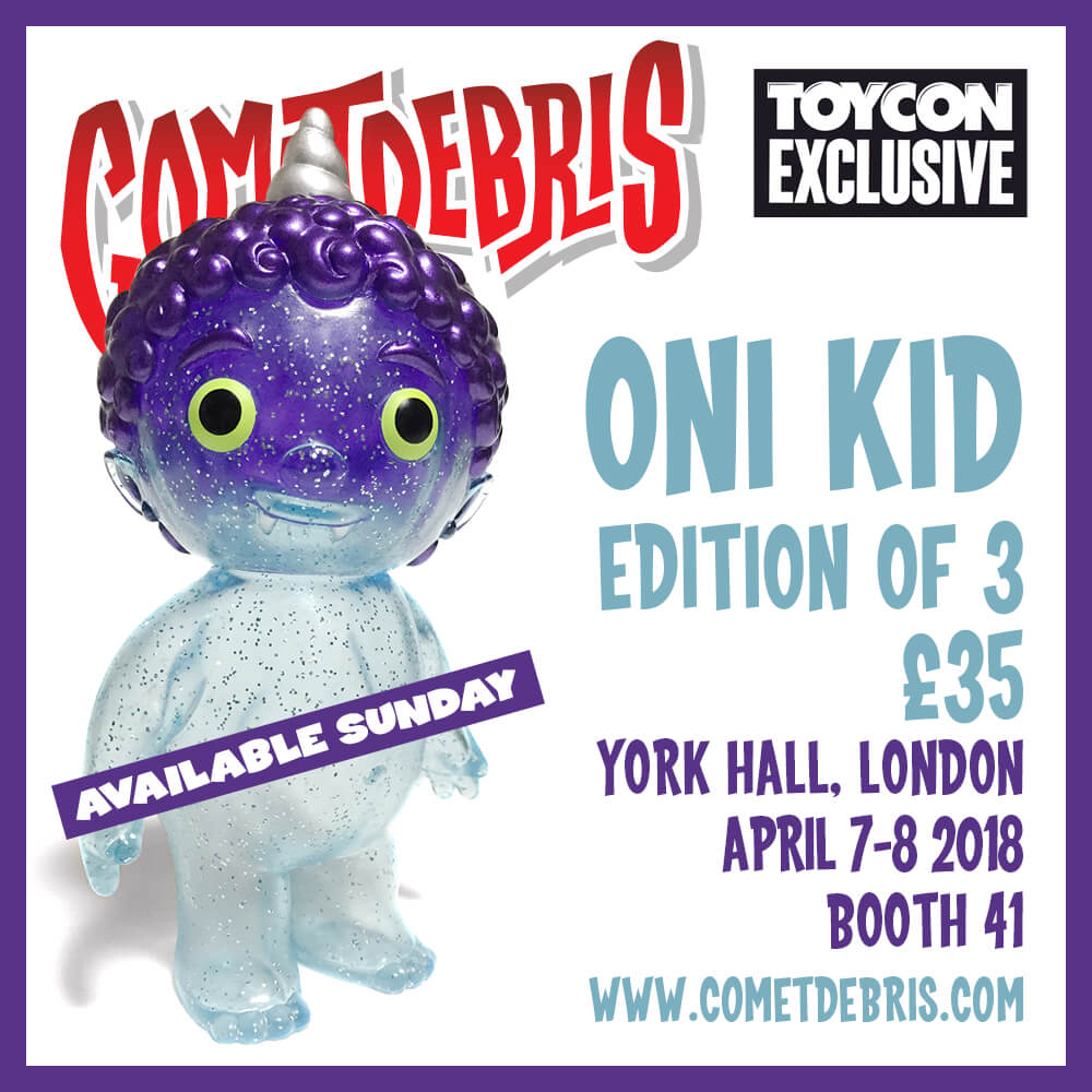Cometdebris has invaded and set to conquer London once again! 4th year in a row and this WEEKEND Koji Harmon aka Cometdebris has brought along with him a few exclusives all the way from Japan. Expect to see Tofu Kid, Kid Ace, Ace Robo, Kappa Kid our favourite Oni Kid. This year Cometdebris added a little twist for ToyCon UK, by giving you the chance to own some custom pieces too.