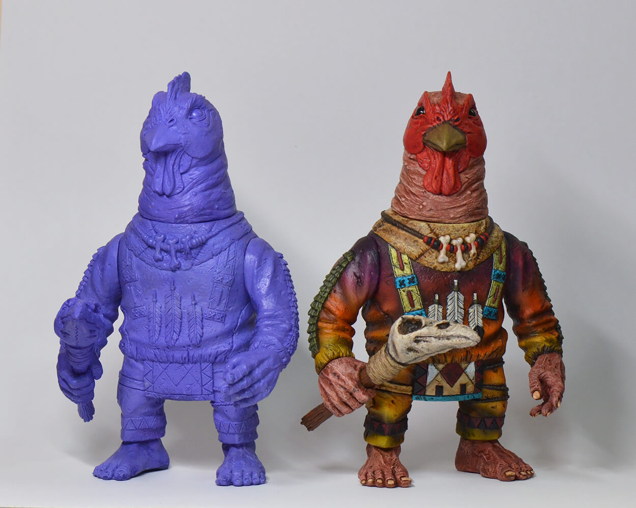 Daniel Yu’s back. That means he’s back to take over the world with his evil forces of vinyl and resin. A wide variety of figure will be available this Friday. Including a blank and hand-painted version of the new sculpt, the Bird Shaman. The classic Jiangshi Acolytes in various sizes, Lunar Beasts, Lunar Cats, Lunar Clerics and Space Deities. Let’s open this pandora’s box;