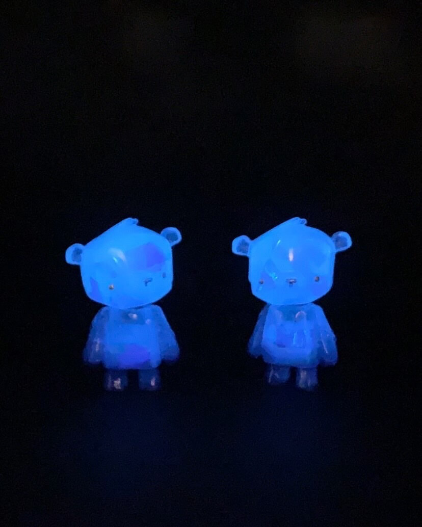 There are two small bear runner up lottery prize thingys, they are kind of sparkly and glow blue. £15 postage.
