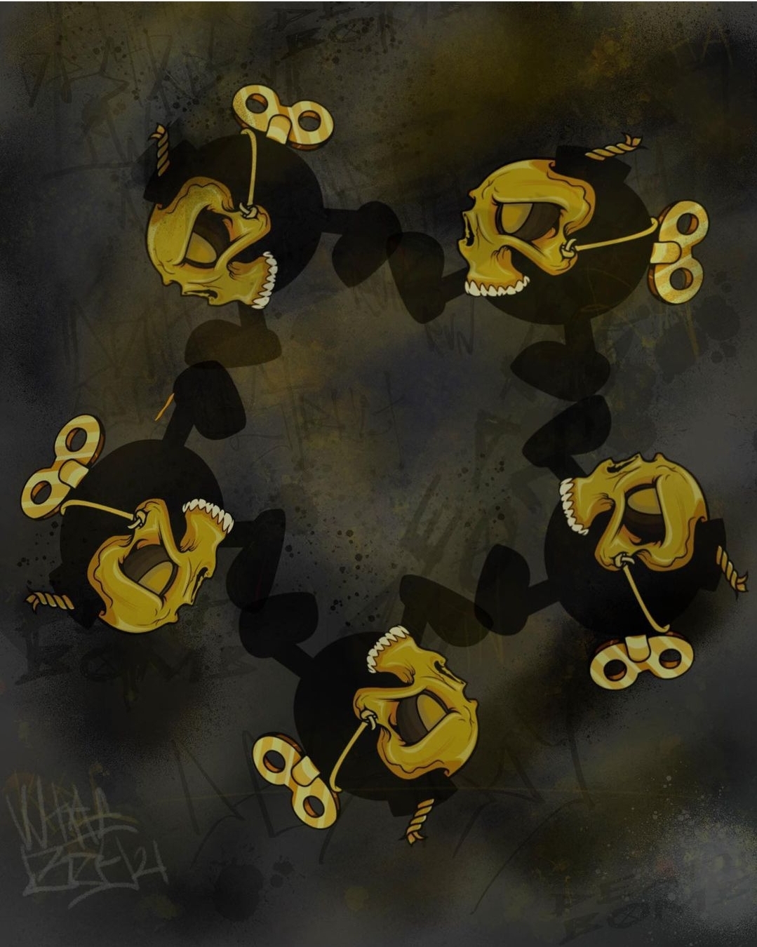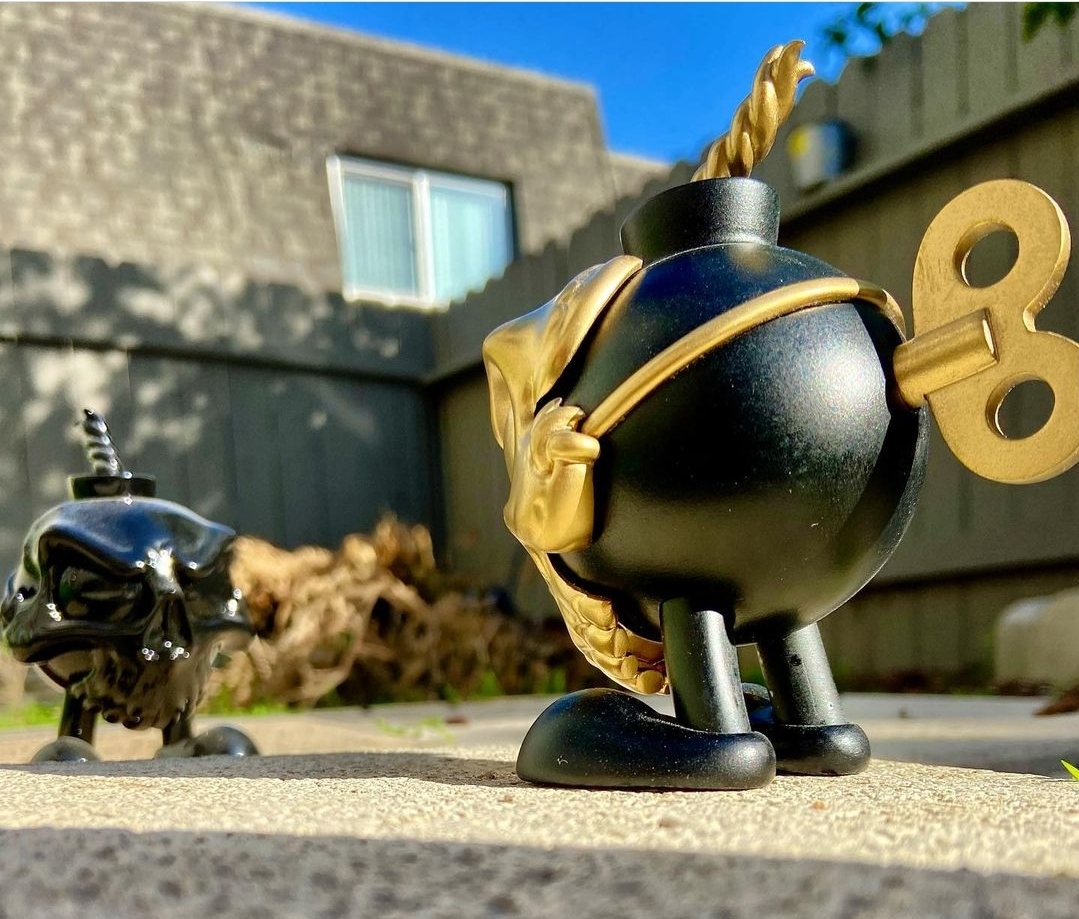 Gaham Bennett AkA WhiteBoy.1988 coming at you with an explosive release! We gave you a teaser earlier in the month and if you spotted it you get a pat on the back, HA. in the words of Reggie Booms, are you ready for this 4 inches solid Black and Gold explosive wave that’s about to come through with persist demolition work to help path a path for this unsung, underground and underrated artist of the resin toy world? The second edition of his sold-out OG Death Bomb in a new colourway! Black and Gold Love!