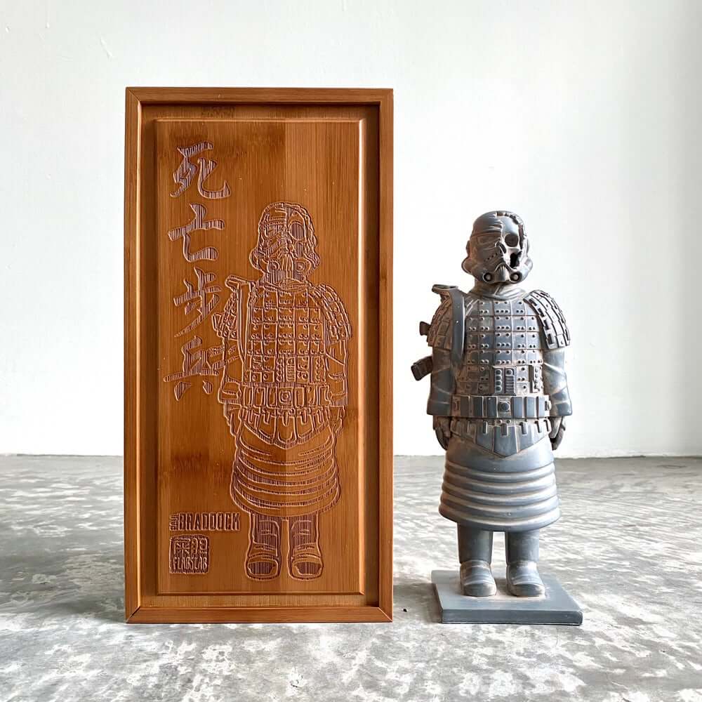 “Oh hey, big boy!” Last year we saw the mini Deathtrooper! Now presenting the 3rd figure in the terracotta series, Paul Braddock x FLABSLAB gives you the bigger brother from another mother DEATHTROOPER. Paul Braddock x FLABSLAB knows size matters and in this case giving you the opportunity to own 9.5-inch tall version. Deathtrooper is your everyday foot soldier carries an AR-15 in case shit happens. It is a collaboration with Paul Braddock, FLABSLAB. Yeah, try and fend off the Resistance with DEATHTROOPER! Classic terracotta colourway painted to resemble a terracotta warrior good enough to join the Qin Shi Huang, protecting the emperor in his afterlife? Who knows, all we know DEATHTROOPER has launched and limited to 50pcs.