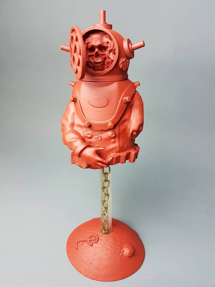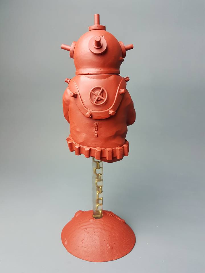 This figure was conceptualised and designed in 3D software and 3D resin printed before being moulded and cast in polyurethane resin.