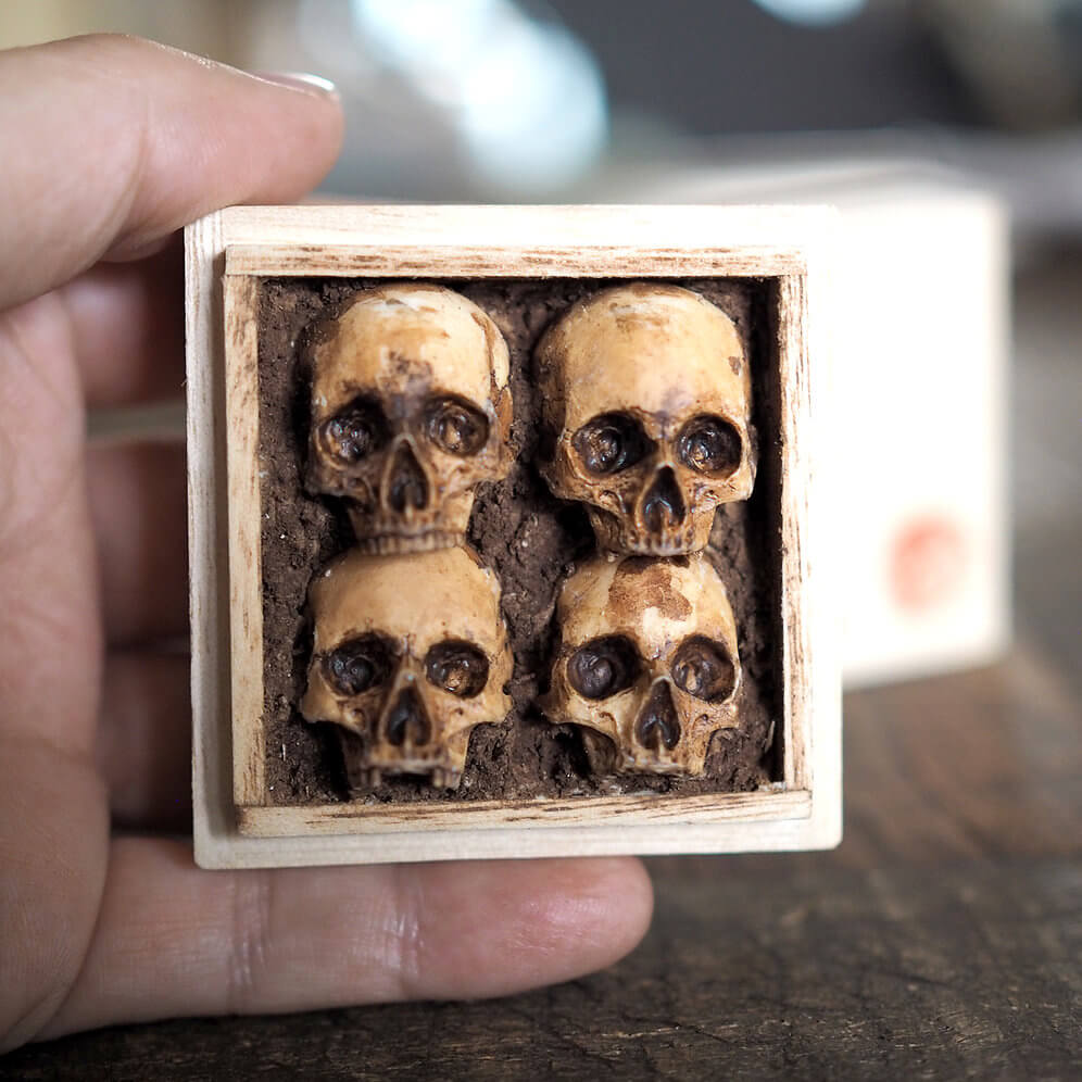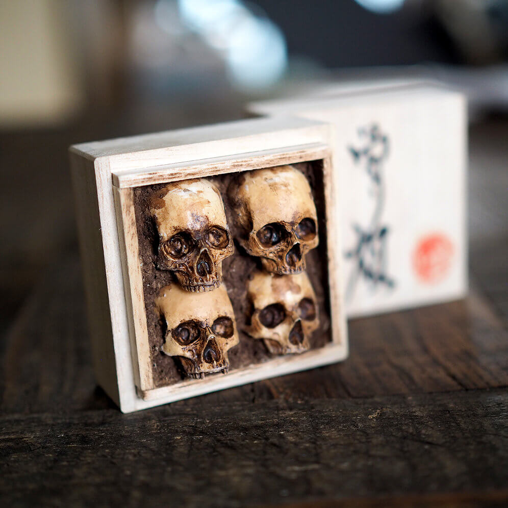 How about these Skull Boxes, pictured below, for your skull collection? Four skulls implanted in a wooden box. Available for $65 from the Tokyo Jesus store HERE this weekend. These look rather epic in the box.